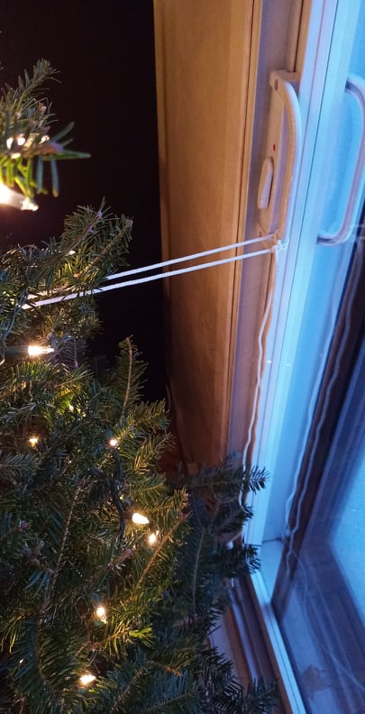 C’est donc pas trop tard à matin que je pars en mission pour l’achat du fameux sapin. Le défi, c’est d’en trouver un beau, pis surtout pas trop gros pour le rentrer entièrement dans le KONA. Évidemment, yé hors de question que j’attache quoi que ce soit sul top de mon char. 11h., la transaction est conclue. En rentrant les deux boutes de mon sapin dans des grands sacs à poubelle, je réussis à le trimballer ni vu ni connu dans mon bolide. Reste juste à le monter au TROISIÈME pis à le visser dans son socle avec l’aide de Renaud.