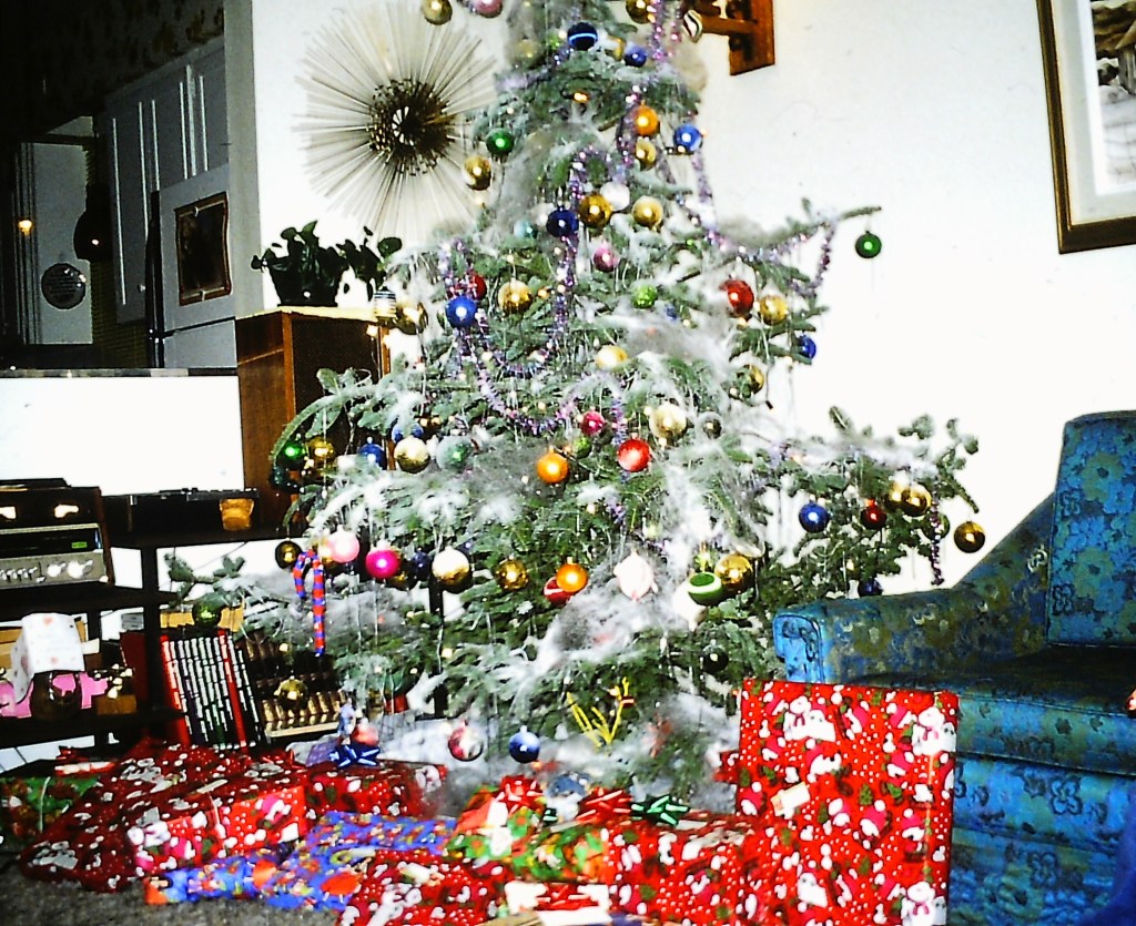 Chez nous, on avait toujours un sapin naturel pis le décorer, c’était tout un événement. Habituellement, mes parents s’occupaient de la première étape : les maudites lumières. Si vous avez des jeux de lumières récents, vous avez dû remarquer qu’asteur, le kit fonctionne même en présence d’une ampoule brûlée, ce qui est selon moi, une des plus grandes avancées du XXIième siècle. Dans le temps par contre, ça marchait pas de même pis repérer la lumière fautive qui empêchait l’illumination de tout le set, c’était toute une paire de manches qui pouvait générer une certaine impatience pis quelques sacres bien placés. Nos lumières donc, contrairement à aujourd’hui, étaient multicolores. Personne d’ailleurs, aurait eu l’idée de mettre uniquement des lumières blanches parce que Noël, c’était la fête, la joie, la couleur.