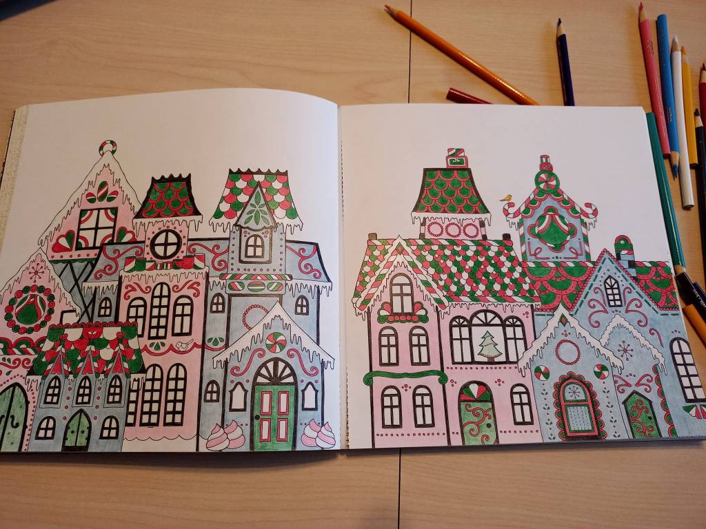 Quatrième jour de vacances, j’arrête pas de me dire à quel point je suis bien avec tout ce temps-là devant moi. Aujourd’hui, ma journée est ben ben tranquille : TV le matin, ordi, finalisation des bas de Noël, coloriage en après-midi… Pour varier, je me suis acheté un cahier à colorier de Noël. Aujourd’hui, je mets la touche finale à une dizaine d’heures de « travail ».