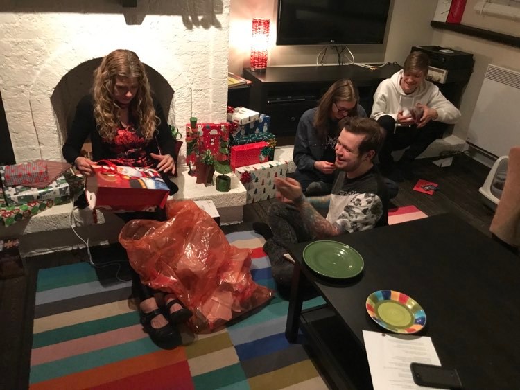 La soirée a passé dans le temps de le dire. Ça faisait deux ans qu’on avait pas été tous ensemble. On a bien mangé, bien bu, parlé fort, joué à des jeux pis déballé des cadeaux. Alain a été un hôte exemplaire, comme toujours. Mon père était en forme pis de grande humeur. Les cousins se sont amusés ensemble malgré la différence d’âge. Mon frère pis moi, on s’est occupé des jeux. De beaux moments dans une belle famille… de gars ! 🙂