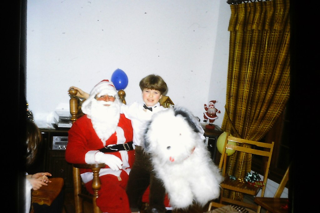 N’empêche, nos partys de Noël étaient ben le fun : beaucoup de bruit, beaucoup de cadeaux, beaucoup de bouffe pis d’alccol pis un vrai Père-Noël. On veillait tard ! Au fil des ans, les partys ont migré pour avoir lieu à tour de rôle chez nous pis chez mes oncles et tantes. Le Père-Noël a aussi changé d’interprète. Subitement, c’est mon oncle Gilles qui « travaillait » au réveillon mais ça bernait pu personne. Par contre, l’arrivée de notre invité vedettte suscitait toujours le bordel l’émerveillement. Y faut dire que le Père-Noël rivalisait d’ingéniosité pour nous amuser. On l’a déjà vu sonner à toutes les portes de notre rue avant qu’y se décide à s’arrêter chez nous. Chez mon oncles Gilles, yé déjà arrivé en dévalant l’espèce de pan de côte dans le fond de la cour, tout en se pétant plus ou moins la margoulette dans la neige. Chez mon oncle Louis, yé arrivé en Skidoo dans le champ d’en face. Je vous le dis, on avait tout un cascadeur !
