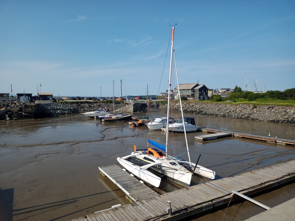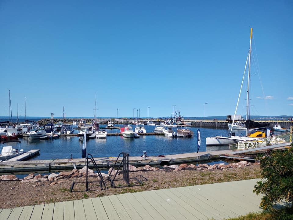 Encore sur la route de très bonne heure, mon trajet du jour va bon train. Je constate que la route 132 offrait des ben meilleurs points de vue du côté nord que du côté sud. Je me permets une petite pause très rapide après 200 km, à Carleton-sur-merde. J’avais mis ben des espoirs dans ste village-là parce que tout le monde m’en parlait mais je suis pas impressionnée pantoute. Y’a absolument rien de beau ni de le fun à regarder là ou ben je suis pas arrêtée à la meilleure place. En tout cas, j’ai vu ben des ports plus beaux que ça dans ma vie… En plus, y’a juste une toilette chimique pis elle est déguelasse. 🤢 Je repars dans le temps de le dire. Une cinquantaine de kilomètres plus loin, je franchis enfin le pont qui mène à Campbellton. Me vla Néo-Brunswickoise d’un jour. 😁