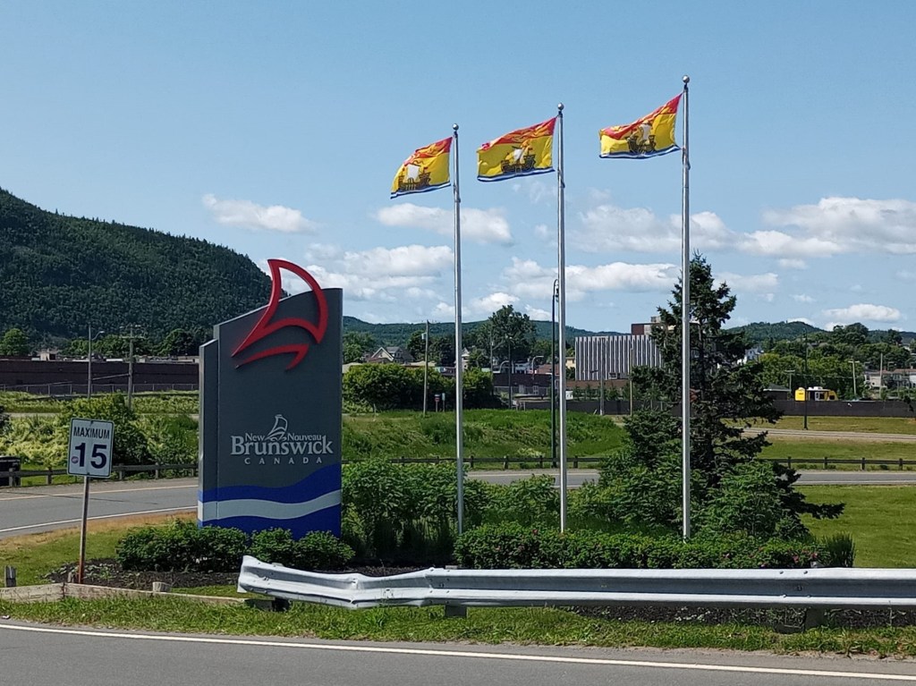 Le Nouveau-Brunswick, c’est pas dépaysant pantoute. Partout, l’affichage est bilingue pis parfois même juste en français. Étrangement, je m’y sens quand même pas tout à fait chez nous. Le chemin que j’emprunte est rapide mais un peu plate. Pendant environ 250 km, je monte pis je descends sans cesse sur une route bordée d’arbres. De la verdure, en voulez-vous, en vla ! Vers midi et demi, je suis quand même déçue de constater que malgré la seule pause que je me suis accordée depuis mon départ de Percé, je suis pas rendue aussi loin que j’aurais voulu. Je réalise soudainement que mon timing est pas si pire. J’y avais pas pensé mais je suis rendue… une heure plus tard dans les maritimes ! Autour de 13h., je franchis à nouveau la frontière qui sépare les deux provinces. Je me sens de retour chez moi malgré ma brève incursion dans la province voisine. Étrange, j’étais pourtant encore dans MON pays ! Comme quoi, on a beau être Canadien, dans notre tête, la mienne en tout cas, je suis ben plus Québécoise.