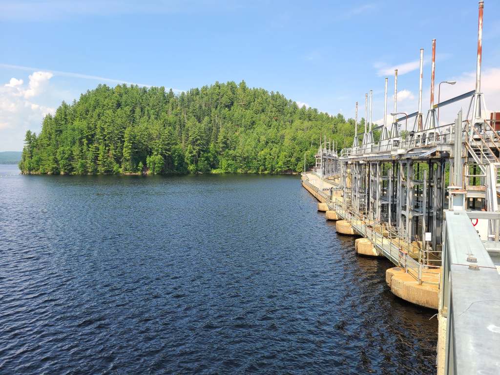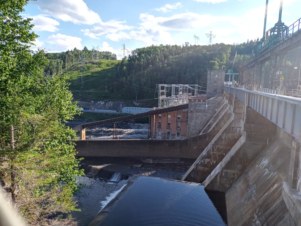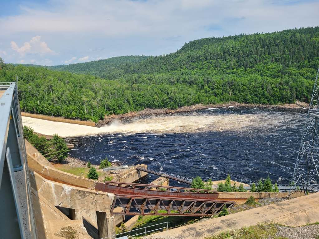 Passé La Tuque, y faut bifurquer sur une route foretière pour se rendre à destination. Heureusement, le chemin est très bien asphalté ce qui me permet de dire que je pourrais un jour envisager d’y faire rouler le KONA. Après une cinquantaine de kilomètres, on arrive à notre deuxième point d’intérêt, la centrale de La Trenche, passage OBLIGÉ étant donné qu’on doit rouler dessus. Comme chaque année, on descend pour admirer les points de vue pis prendre un selfie. Sérieux, je compte pu les photos du barrage en sauvegarde sur mon ordi. Elles se ressemblent toutes évidemment. Voici la cuvée 2022.