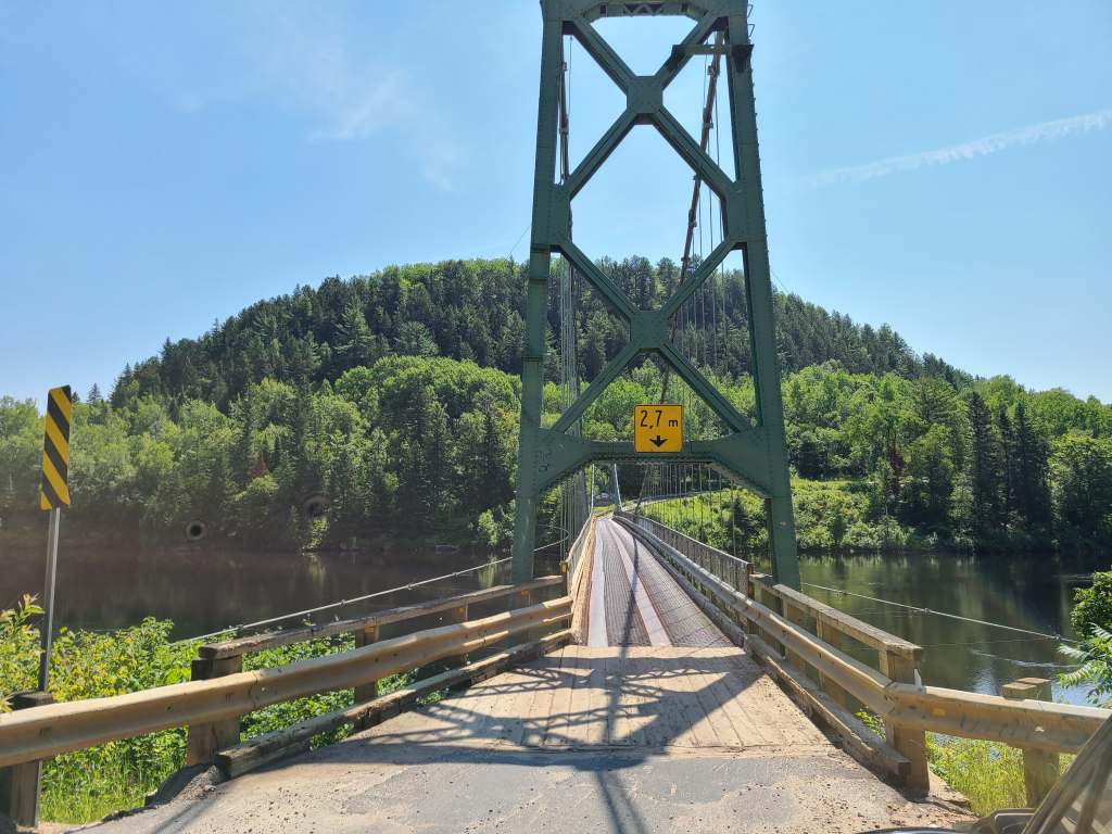 Comme toutes les activités qu’on répète d’année en année, un rituel s’est installé au fil de nos nombreuses expéditions en Haute-Mauricie. Pour une journée gagnante à Rapide-Blanc, y faut partir pas trop tard question de rouler sans rush pis de profiter des beaux points de vue offerts par le trajet. La route entre Shawinigan pis La Tuque est réputée pour être une des plus belles du Québec. Elle longe la rivière St-Maurice pratiquement tout le long. Nous autres, on commence à la connaître pas mal. On l’a vue par tous les temps pis par toutes les saisons. Ça nous empêche pas de trouver ça ben beau pis ben le fun pareil. À matin, y fait un temps superbe. On est ben contents parce que la sortie implique une activité « aquatique » qui se veut une mission INCONTOURNABLE de la journée. Pour tu suite, yé midi pis on rentre dans la ville de La Tuque, lieu de la première attraction à faire découvrir à la recrue : le pont Saint-Maurice. Ste pont-là, c’est le plus étroit que j’ai vu dans ma vie. Quand tu roules dessus, y te reste à peu près deux pouces chaque bord pour pas accrocher tes miroirs. Aujourd’hui d’ailleurs, mon père se questionne à savoir si un pick-up passe là-dessus. Moi je dis que oui, en pliant les miroirs pis en roulant vraiment vraiment drette.