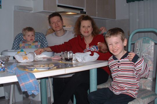 Quelques mois après son arrivée ici, mon mari a obtenu son permis de travail pis trouvé un emploi. À cette époque-là, les garderies à 5$ existaient pas encore pis comme j’avais aucune qualification utile pour trouver une job qui avait de l’allure, on a décidé que je resterais à la maison avec William en attendant sa rentrée en maternelle. À vrai dire, ça faisait ben mon affaire parce que j’avais absolument pas envie de le caser en garderie 40 heures et + par semaine. Je voulais pu d’enfants parce que j’avais trouvé ça trop dur avec Wil mais en 2000, j’ai subitement changé d’idée. Un mois plus tard, j’étais enceinte pis en mai 2001, à 30 ans, j’accouchais de Renaud. Ste fois-là, pas question de post-partumer pendant des mois. Je l’ai eu un vendredi, je suis revenue chez nous le dimanche, pis le lundi, je magasinais aux Galeries d’Anjou avec des feuilles de chou dans ma brassière. 🤣 En juillet 2001, on déménageait (encore) dans un 5½ situé dans un rond-point, face à un parc, avec la future école de William en vue par ma fenêtre de cuisine. Cet appartement-là, fiez-vous sur moi, j’allais le garder longtemps. Y’était beau, grand, bien situé mais surtout, tout le monde était écoeuré de déménager le maudit GROS set de chambre.