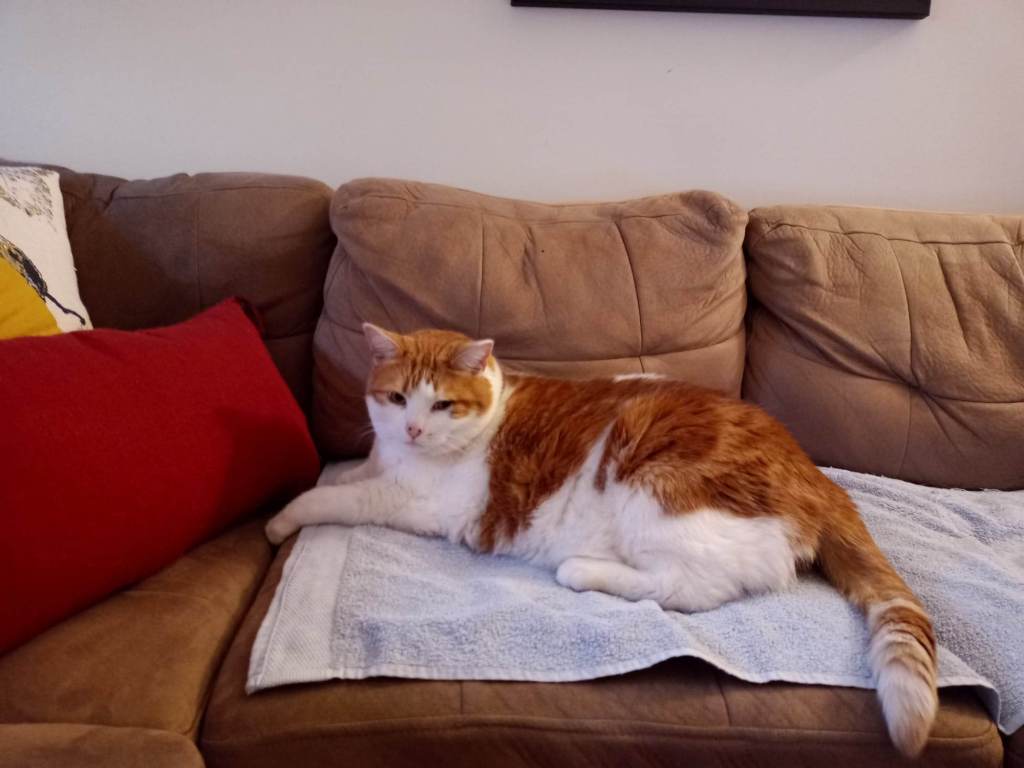 Le lundi matin, Charlot a UN PEU meilleure mine. Y va par lui-même à son bol pour manger quelques croquettes. Par contre, y veut rien savoir de la bouffe molle achetée chez le vet. Ça, ça m’arrange pas parce que je comptais là-dessus pour y cacher ses pilules dedans. Un peu désemparée, j’appelle 1-800-SYLVIE pour des conseils. ☎️ « J’m’en viens, bouge pas » qu’elle me dit. Dans le temps de le dire, Sylvie débarque chez nous avec d’autre bouffe, des gâteries pis un lance-pilule. Évidemment, comme elle est super expérimentée avec les chats, elle a pas besoin de tout ça pour soigner mon félin rebelle. Avant qu’il ait le temps de se rendre compte de quoi que ce soit, elle lui pitche ses quatre comprimés dans le fond de la gorge. La visite de Sylvie me rassure. Je me sens d’attaque pour m’occuper des prochaines prises moi-même. Je me sens aussi plus tranquille de laisser mon GROS bébé tu seul tout l’après-midi pour aller travailler. Quand je reviens à 17h., Charlot a pas sa forme habituelle mais y’a déjà l’air un peu mieux. Ben mieux que la veille même. Y mange (un peu) pis y se promène. Je suis soulagée. Grâce aux bons conseils pis au support moral de Sylvie, j’arrive facilement à donner la médication à mon malade. Rendu au mercredi, Charlot va significativement mieux. Au bout d’une semaine, yé pratiquement guéri.