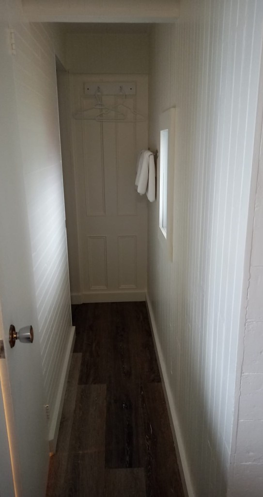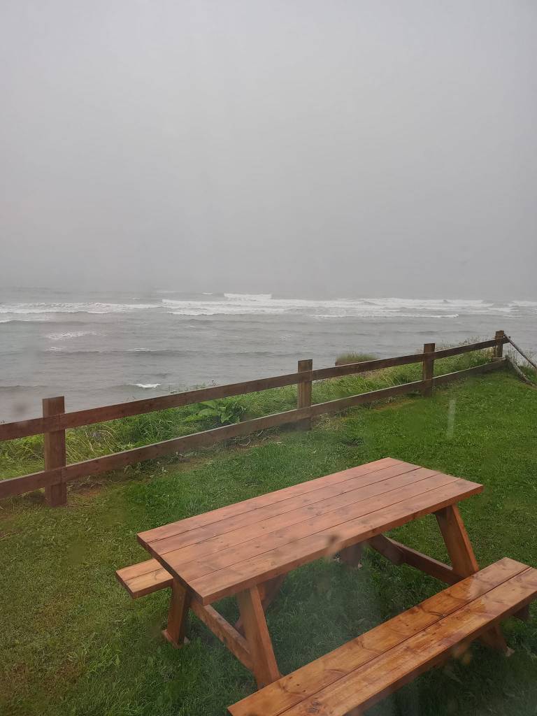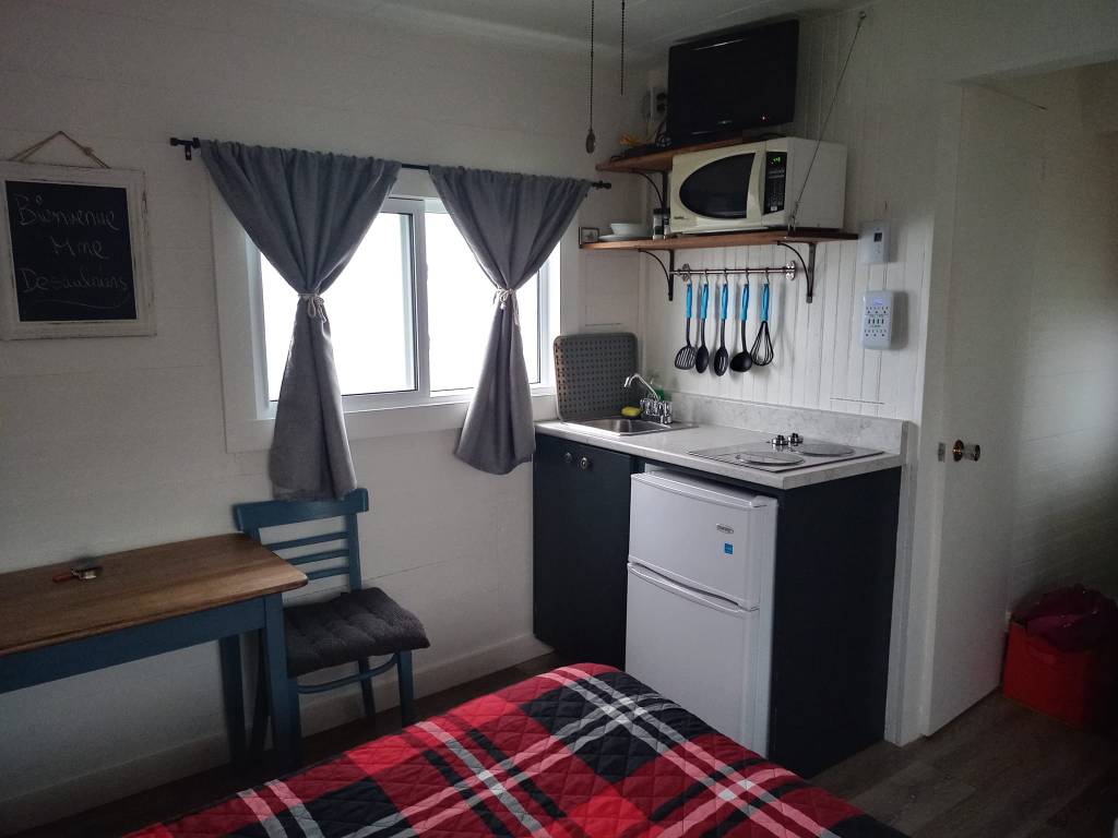 Avec tout ça, yé rendu 16h. pis yé temps de me rendre à mon prochain hébergement situé une vingtaine de kilomètres plus loin. En chemin, j’arrête dans une petite épicerie pour m’acheter des spaghettis aux fruits de mer à réchauffer au micro-ondes pis un petit dessert. J’arrive finalement aux Cabines sur mer quelques minutes plus tard pour découvrir une chambre aussi charmante que petite mais ultra propre pis située encore plus près de la mer que la précédente. D’ailleurs, quand j’avais fait mes réservations en décembre, je les avais toutes décalées d’une journée pour avoir ste chambre-là pis profiter du bord de l’eau exceptionnel. Malheureusement pour à soir, je suis confinée à l’intérieur. Pas de BBQ, pas de marche sul rivage pis pas de coucher de soleil à admirer non plus. Y paraît qu’on peut pas tout avoir ? Ben je vous confirme que c’est vrai. 😢