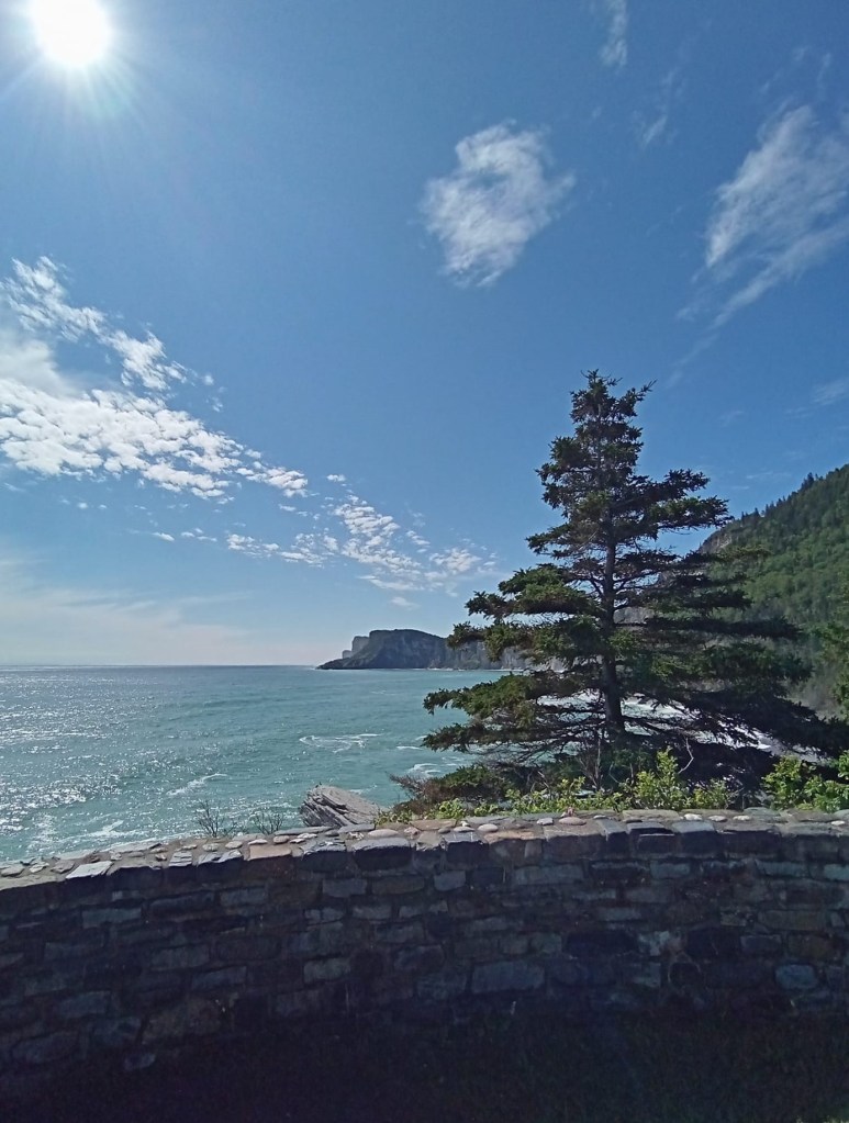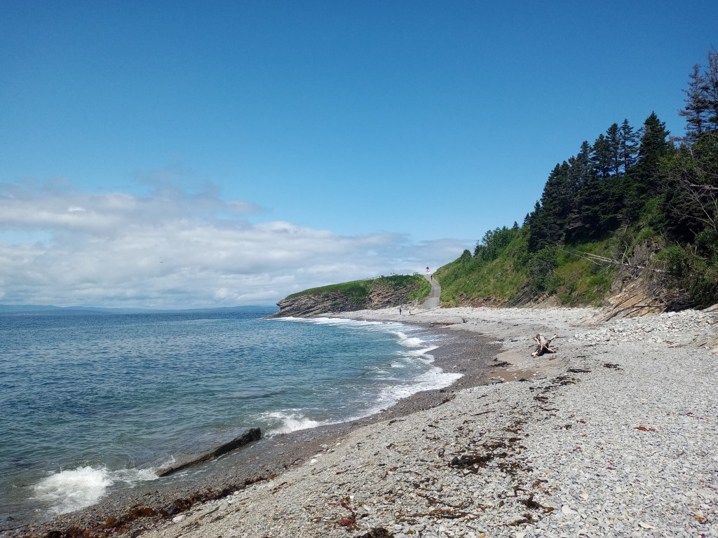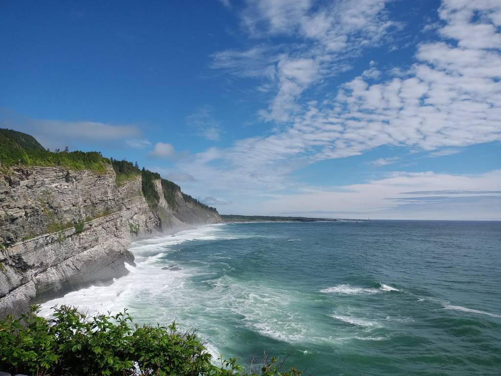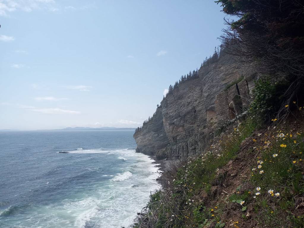 Le Parc Forillon est IMMENSE. Là-bas, y’a de quoi s’occuper pour une journée entière voire plusieurs jours. Au poste d’accueil, je jase un peu avec la fille pour voir ce qui serait le plus le fun à faire. Elle me conseille d’aller vite fait jusqu’au Cap Bon ami (côté nord) pis de rouler ensuite jusqu’à l’entrée sud pour faire une randonnée de 8 km, avec vue sur la mer, jusqu’au Cap Gaspé qu’on appelle ici le bout du monde. Le Cap Bon ami est accessible en voiture pis nécessite pas vraiment de marche. Évidemment, comme partout en Gaspésie, il offre une vue magnifique sur la mer mais aussi sur des falaises pis sur le Phare de Cap-des-Rosiers qu’on peut apercevoir au loin. Surprise encore de l’immensité pis de la beauté des lieux, j’y prends quelques photos avant de me diriger à l’entrée sud pour ma randonnée pédestre.