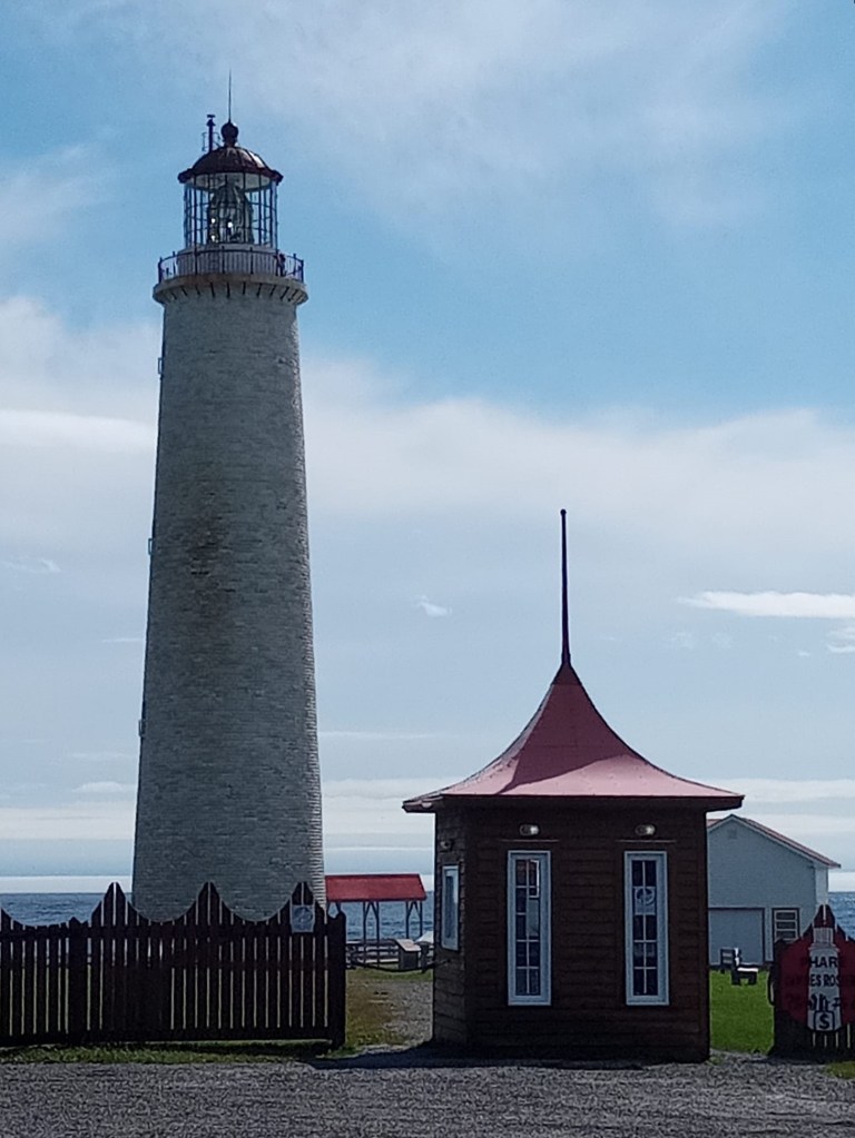 Faque 8h15, je me pointe à la réception après avoir fait un brin de toilette, ramassé ma chambre pis paqueté le KONA. Je jase un peu avec le monsieur à qui je demande quoi faire d’ici à ce que je me rende à Percé. Sans grande surprise, y me recommande chaudement le Parc Forillon. Ste parc-là, j’en ai évidemment beaucoup entendu parler mais j’y étais pas allée l’an passé parce que mon père m’avait dit : « Bof, ste parc-là, c’est juste un parc, pareil comme le Parc national de la Mauricie »… Cette année, par contre, devant l’engouement du monsieur, je me laisse tenter. Après tout, mon père m’avait aussi dit, à propos de la Gaspésie : « Y’a rien à faire là-bas. Y’a de l’eau pis c’est toute ». Ouin pis ? J’aime ça moi l’eau ! Faque dla marde, pour une fois, je vais désobéir à mon patriache (c’est rare). 😬 9h., j’embarque dans mon char après avoir pris quelques photos du site dont j’aurais pu profiter hier soir si y’avait fait beau. Le Parc Forillon étant à seulement 4 km de mon motel, j’y arrive en un rien de temps, après être passée devant le Phare de Cap-des-Rosiers, phare le plus haut (34 mètres) du pays ! Je prends une photo vite fait depuis la fenêtre du KONA. 📷
