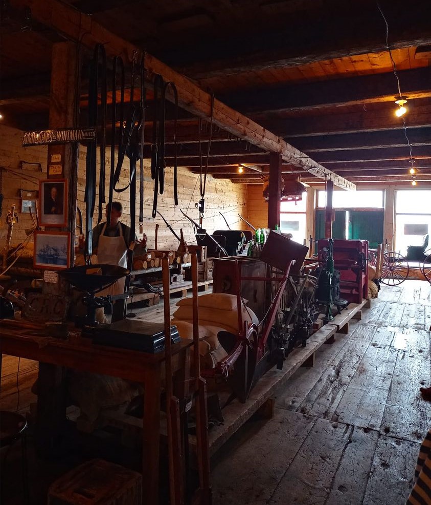 Y fait pas ben beau mais comme c’est ultra humide pis qu’y’a pas de vent pantoute, y fait pas frette dehors. En fin de matinée, je décide de profiter du temps grisâtre pour aller visiter un magasin général historique situé à 9 km de mon hôtel, à l’Anse-à-Beaufils. La visite de ste magasin-là dure 90 minutes. Pour la modique somme de 15$, t’as droit à une visite guidée par différents animateurs en costume d’époque, tous plus dynamiques pis captivants les uns que les autres. En plus, y sont drôles pis y nous font participer. La visite est super ben organisée pis franchement intéressante. Moi qui m’attendais à simplement contempler des étalages de vieux produits, je suis agréablement surprise. En une heure et demie, tout y passe. On nous parle d’équipements domestiques, d’outils anciens, de pêche, de produits pour soigner, de traditions, de modes de vie, de coupage de cheveux en passant par les vêtements jusqu’aux cadeaux de mariage. La visite est vraiment passionnante. À la toute fin, j’impressionne les membres de mon groupe en répondant au guide qui nous demande à quoi correspondent les couleurs bleu-blanc-rouge du célèbre symbole des Barber shop. 💈 Le savez-vous vous-autres ? Moi oui, gracieuseté de mon amie Katrine qui m’avait justement recommandé l’endroit. Le bleu = les veines, le rouge = le sang pis le blanc = la propreté. Ben oui vous-autres, parce que dans le temps, le barbier se contentait pas de couper des cheveux pis de raser des barbes. C’est aussi lui qui faisait des saignées pis qui arrachait des dents. Je peux tu vous dire que j’ai eu l’air assez instruite merci ? Kin d’ailleurs, merci Katrine, et pour la recommandation et pour le tuyau. 🤣