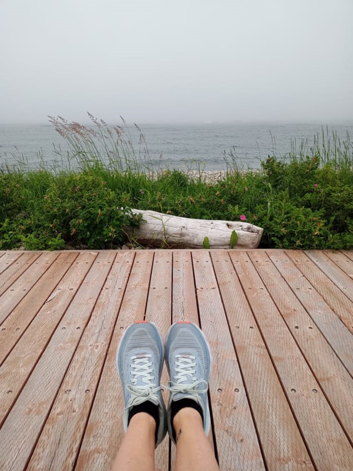 J’avais imaginé que cette année, à Percé, je prendrais ça relax, que je lirais sul bord de l’eau tout en faisant bronzette pis que je prendrais l’apero sur le petit balcon devant ma chambre. Malheureusement, sans soleil, c’est pas long qu’on frissonne quand on est dehors sans bouger. Vers 16h., je finis par regagner ma chambre. Ici, la température a jamais excédé 18ºC. pis je suis quand même pas pour marcher sans arrêt. D’ailleurs, mon appli de marche m’indique que j’ai marché 41 km depuis que je suis partie de chez nous dimanche passé. Ça évidemment, c’est sans compter tous les petits déplacements que j’ai faits mais que j’ai pas comptés. Pour l’année 2023, je m’étais programmé un objectif très conservateur de 265 km dans mon application. Je l’ai atteint pis même dépassé hier. J’en ai débuté un autre de 150 km, à atteindre avant la fin décembre. À mon avis, je vais le dépasser celui-là aussi mais comme je marche moins quand je travaille, je voulais pas voir trop grand. Cette réflexion me fait réaliser que mes vacances seront pas éternelles. Y m’en reste encore pas mal par contre. Pis j’ai d’autres projets.