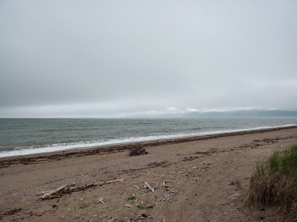 Une douzaine de minutes plus tard, j’arrive à la Plage de Bridgeville pis je constate que c’est effectivement peu pour pas dire PAS fréquenté. En fait, je suis tout fin seule dans le petit espace qui sert de parking. Devant moi, un sentier qui semble interminable avec le barachois à babord pis la mer à tribord. C’est tranquille sans bon sens. J’ai l’impression que je viens d’arriver dans un endroit que personne connaît. Tout pour me plaire : du calme, du grand air pis de l’eau. Je pars sur le sentier qui longe le barachois sur ma gauche. 🚶♀️ L’endroit est parfait pour admirer pis entendre des oiseaux de toutes sortes. 🦅 Au bout de 2 km, je vire de bord pour revenir par la plage. Malheureusement, tout est encore ben gris. J’aperçois quand même plusieurs canards qui font joyeusement baignade au milieu des vagues. 🦆🦆🦆 À part ça, y’a pas âme qui vive. Tout en marchant, j’en profite pour ramasser des jolis cailloux que je vais distribuer : un pour chacun de mes héritiers pis un pour mon filleul. Bon, je suis pas sûre qu’y vont être en pamoison devant mon cadeau mais c’est pour leur montrer que j’ai eu une pensée pour eux-autres. Pis bon, on sait jamait quand on peut avoir besoin d’un caillou. 😂 Le sentier de la Plage de Bridgeville représente un aller-retour de 12 km. Ayant viré de bord après un peu plus de 2 km, je reviens à mon auto une heure plus tard avec 4.2 km à mon actif. J’ai vu ce que je voulais voir pis je veux revenir à Percé profiter de mon dernier après-midi, d’autant plus que la météo annonce 24 avec soleil pis nuages.