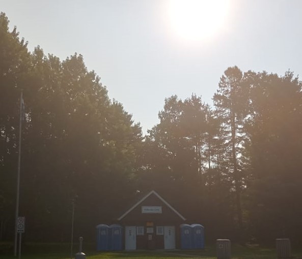 Y fait vraiment beau aujourd’hui pis je compte bien en profiter, d’autant plus que pour l’instant, les conditions s’annoncent pas vargeuses pour les prochains jours. 😥 Tant pis, je verrai ça dans le temps comme dans le temps. Y’a rien de plus changeant que la météo de toute façon. On dirait que pu personne est capable de la prédire faque pour être sûrs, y nous sortent les icônes de soleil, de nuages pis de pluie tous les jours avec un petit orage violent par-dessus ça quand le temps est vraiment humide. ⛅☔🌩️ Yé 7h20 quand j’embarque sur l’autoroute 40 pis 8h35 quand je bifurque sur la 55. Mauricienne de naissance, ici, je suis en terrain connu. En roulant, je me demande qui peut ben choisir la Mauricie comme destination vacances. Me semble qu’ici on a rien d’extraordinaire à part ben des arbres, ben des lacs pis la Tour de l’énergie. J’imagine que le fait d’avoir vécu ici pendant 23 ans m’empêche d’y trouver un intérêt touristique. À St-Étienne-des-Grès, je fais un arrêt rapide dans une halte routière que j’ai jamais remarquée auparavant. Bon, y faut dire qu’elle a absolument rien pour se démarquer avec sa mini-cabane entourée de quatre toilettes chimiques. Dans la « vraie » toilette, pas de papier de toilette ni de savon à mains. Heureusement, je traîne toujours les deux sur moi. Je m’éternise pas plus longtemps qu’y faut là-bas.