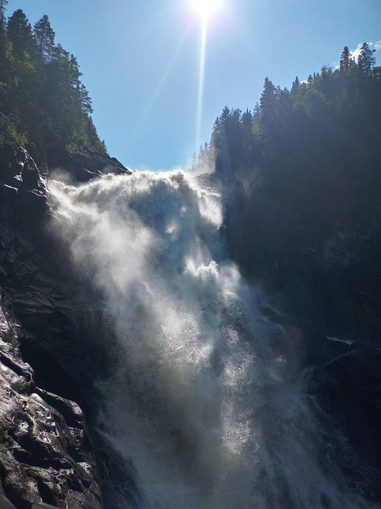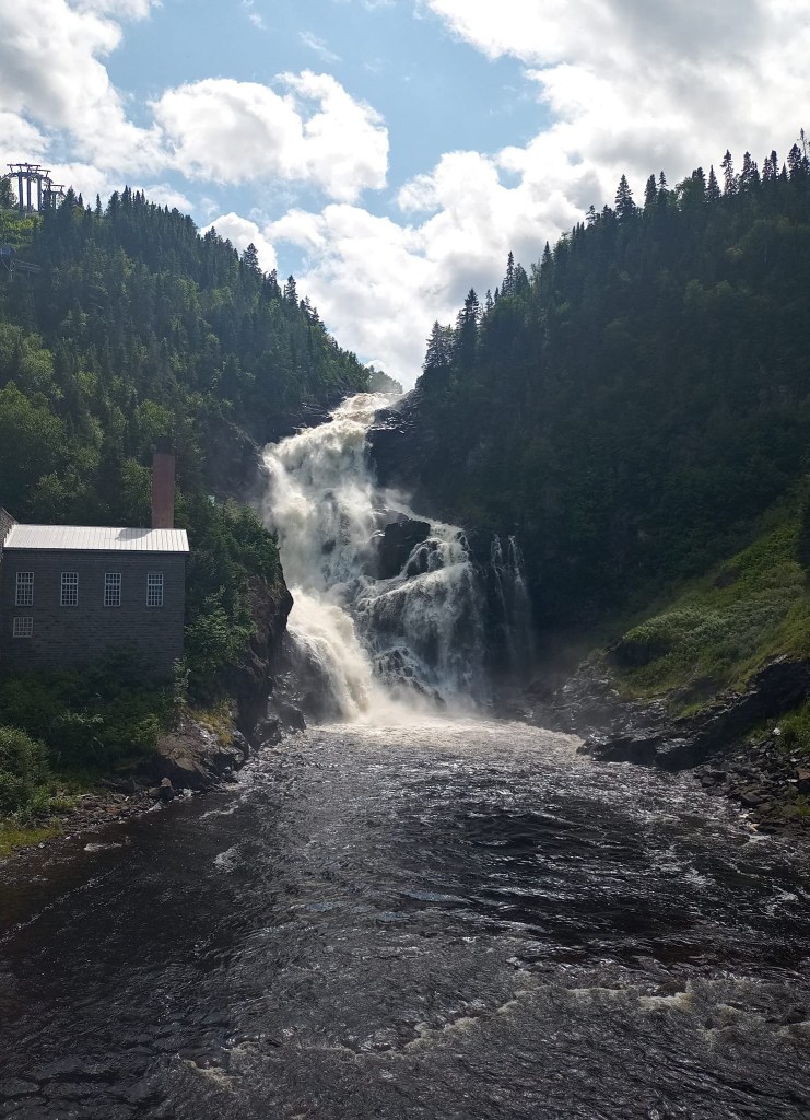 Yé autour de 10h50 quand j’entreprends la dernière partie de mon trajet. Comme je m’y attendais, la route est pas mal plate : des arbres, de l’asphalte pis tu roules à 90 km/h au milieu de tout ça. Mon projet du jour, c’est de visiter le Village historique de Val-Jalbert. J’y arrive un peu après 12h. Moi, Val-Jalbert, je connais pas ça pantoute. La seule fois que j’en ai entendu parler, c’est dans la chanson des Colocs. Dans ma tête, c’est une ville dans laquelle y’a un petit village touristique, un peu comme Drummondville avec son village d’antan. La suite va m’apprendre le contraire. Visiter Val-Jalbert pour un adulte, ça coûte 40.01$. Pas 40$, pas 41$, 40.01$. J’imagine que quelqu’un quelque part s’est dit qu’avec ste tarif-là, y se feraient 1$ de plus par cent visiteurs. Tout un coup de marketing. Je vous dirais, par contre, que c’est un 40.01$ ben investi.
