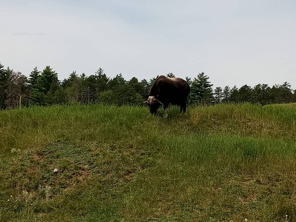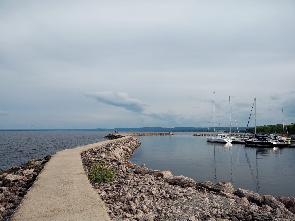 Yé 16h30 quand je reviens finalement à mon motel. Hier, j’ai remarqué un quai pas très loin d’ici. Je décide de m’y rendre à pied, question de profiter des environs pis du soleil qui est toujours là. Ici, c’est pas mal beau. C’est peut-être pas la mer mais le lac est GRAND en maudit. Pas tuable quand y s’agit de marcher, je me résigne quand même à rentrer après 4 km. Avec les huit autres du zoo, pis les dix d’hier, ça fait quand même une bonne trotte en peu de temps. Y faut pas oublier non plus que dans un passé pas si lointain, j’avais mal à un talon ! La soirée va être tranquille je cré ben. Demain, je reprends la route !