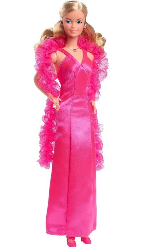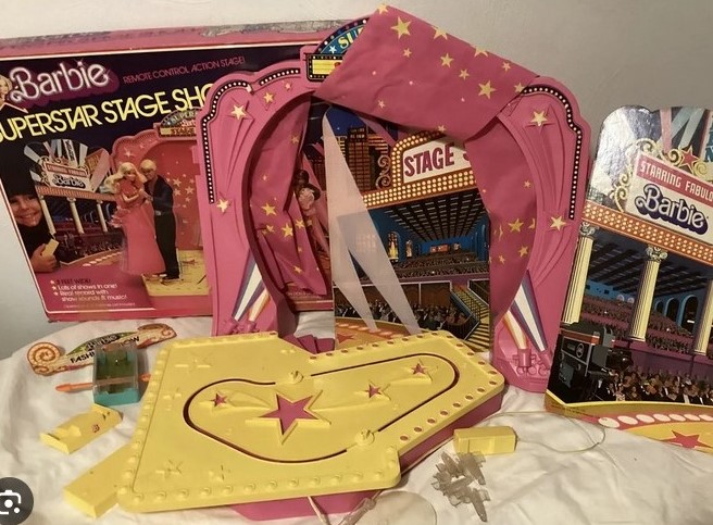 Un autre souvenir, qui date pas mal de la même époque, c’est quand ma soeur, Kathleen pis moi, on jouait à la Barbie ou aux Fisher Price dans le sous-sol chez nous. Ma soeur, plus vieille que moi de 3½ ans, roulait des petits morceaux de papier qu’elle insérait dans le trou en dessous de ses madames Fisher Price. Elle disait qu’elle leur mettait des stérilets. 🤣 Moi je savais même pas c’était quoi un stérilet pis je comprenais encore moins à quoi ça servait de mettre ça à un petit bonhomme en bois. Aussi, ma soeur faisait frencher son Ken avec sa Barbie. 👩❤️💋👨 Ça non plus je comprenais pas trop ça. Moi, comme Barbies, j’avais la famille Beausoleil. C’était des genres de Barbies d’une autre marque pis qui frenchaient pas. J’avais aussi la Barbie superstar. Ste poupée-là, elle était vraiment hot. Elle était super belle, avec une superbe robe fuchsia pis elle venait avec un genre de socle qui fonctionnait à batteries pis qui la faisait tourner en rond. Ah pis Kathleen, elle, ses Barbies faisaient des bonnes actions, comme elle avait elle-même appris dans les Jeanettes. Le seul point commun de toutes ces Barbies-là, c’est qu’elles avaient toutes, sans exception, les jambes pis les chevilles grugées par nos deux chiens. Inutile de préciser que ma Barbie superstar avait pas mal moins fière allure que celle sur la photo.
