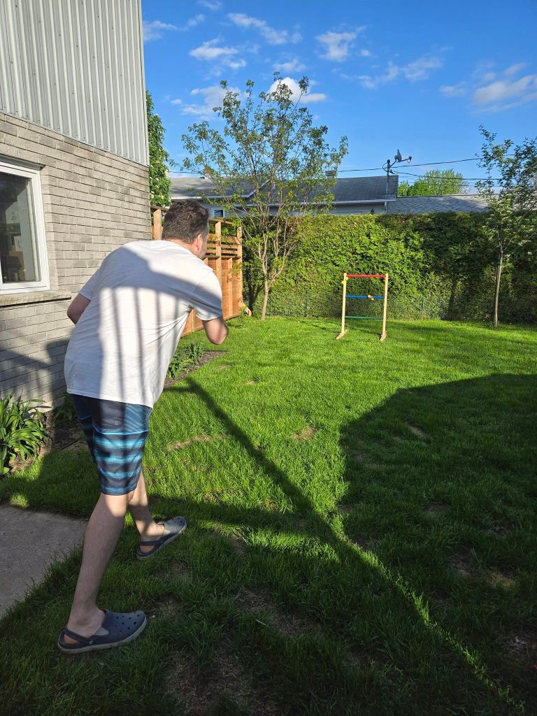 De retour chez mon frère, deux heures plus tard, l’après-midi est déjà bien entamé. Pas le temps de niaiser ni même de s’asseoir, mon frère sort le canon à mousse pis les autres articles pour laver le char à mon père. Le lavage du SELTOS est pas au programme aujourd’hui mais c’est pas grave. Yé pas si sale. Y va l’être plus demain quand je vais refaire de la route mais malheureusement, on peut pas le laver en prévention. Le lavage de la Subaru nouc occupe une grosse heure. Y reste juste assez de temps pour quelques parties de gosses pendant qu’Évelyne, la blonde à mon frère, s’occupe du BBQ. Comme d’habitude, mon frère gagne toutes les games même si je livre une chaude lutte. Si on a le temps, je vais prendre ma revanche après souper. Pour tu suite, y faut manger pis s’occuper des réservations du 15 juin. La sortie implique une nuit à l’hôtel pis la location d’un véhicule qu’on peut « briser » sans trop de conséquences. Je m’occupe de booker l’hôtel pour tous. Mon frère va s’occuper du véhicule lundi. 😁