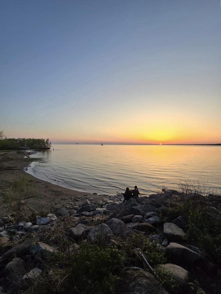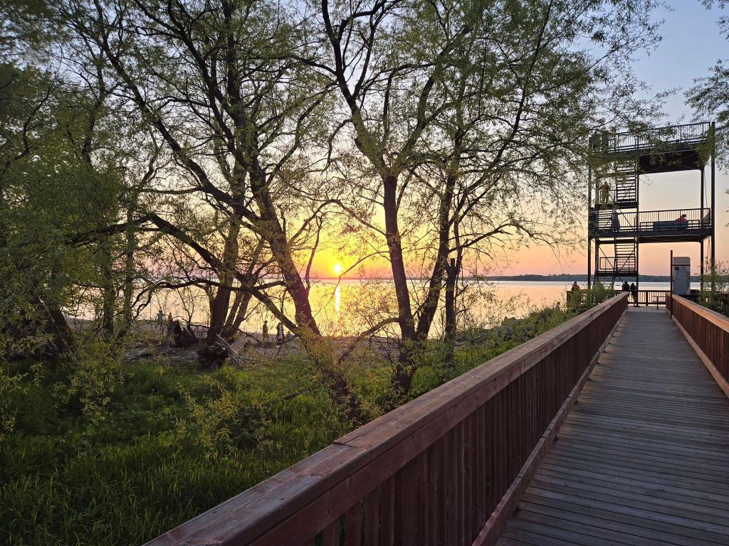 19h45, mon père reprend la route pour Shawi. Mon frère pis moi, on se précipite au Parc Écomaritime pour marcher la passerelle pendant qu’y fait encore clair. L’aller-retour sur la passerelle représente juste 1.5 km. On arrive juste à temps pour assister à un magnifique coucher de soleil. 🌞 J’en profite pour prendre quelques photos avant de repartir pour la revanche de gosses.