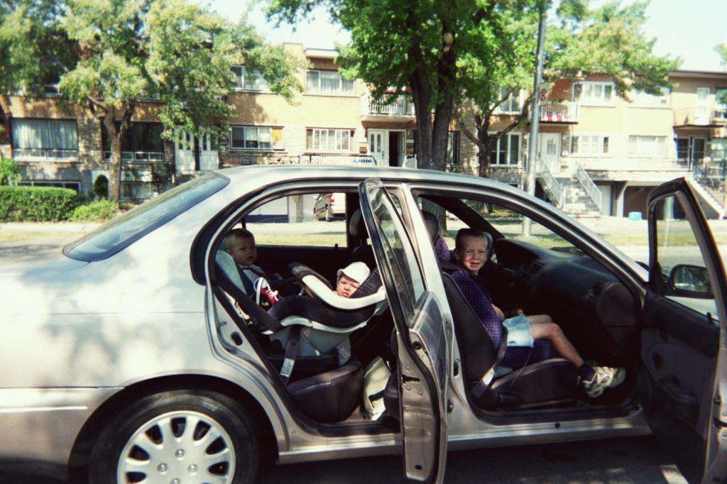 Contre toute attente, en cette belle journée full ensoleillée, mon père accepte la proposition de mon frère d’aller au centre Les rivières magasiner du linge. Le projet est loin de m’emballer mais mon frère m’amadoue en décrétant qu’on va aller chercher des capuccinnos glacés au Café Morgane. Au centre d’achats, je mets beaucoup d’ardeur à dénicher des vêtements pour mon père. Eille, yé pas question que je sois venue icitt pour rien. On en resort finalement avec quatre polos pis deux paires de bermudas. Kin, ça me fait penser que la semaine passée, mon père est allé tout seul s’acheter du linge à Shawi. Y m’a raconté qu’il est rentré dans une boutique, chez Danemark je pense, pis que la vendeuse le suivait en lui disant que les gilets qu’y regardait était trop chers. Finalement, y’en a acheté quatre, juste pour l’écoeurer. 😁 Je vous jure, j’ai le père le plus divertissant de la planète. Voici d’ailleurs un aperçu de l’ambiance dans la Subaru avec mon frère comme conducteur.