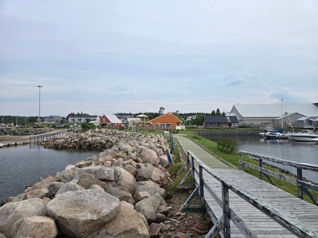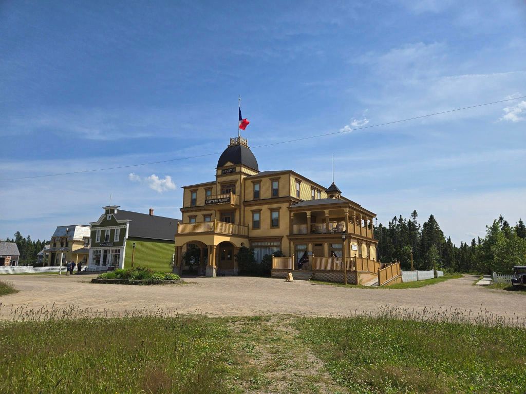 En quittant le phare, y me reste précisément 150 km à parcourir dans toute ma journée. C’est pas tant que ça mais ces kilomètres là, comme les 200 que je viens de faire, sont tous sur des routes en face à face dont la maximum varie de 50 à 90 km/h. Ici d’ailleurs, y’a beaucoup de boutes de route limités à 60 km/h, chose qu’on voit rarement chez nous. Aussi, je sais pas si c’est moi qui suis délinquante mais personne semble outrepasser les limites permises. Sur la route 134, je prends donc mon mal en patience. Certains tronçons, ceux qui passent tout près de l’eau, offrent une jolie vue. Sur d’autres segments, je suis tout fin seule à circuler, au milieu d’arbres, sans croiser ni villages ni indications pendant des dizaines de kilomètres. 🌳🌳🌳 Le seul espoir auquel je me racroche, c’est le temps pis la distance qui diminuent sur mon GPS. À 13h20, j’arrive finalement au Village historique acadien. Si on tient compte que j’ai avancé d’une heure en changeant de province, ça m’a pris 5h20 pour me rendre à destination. Pas pire pantoute. La madame est contente. 😀