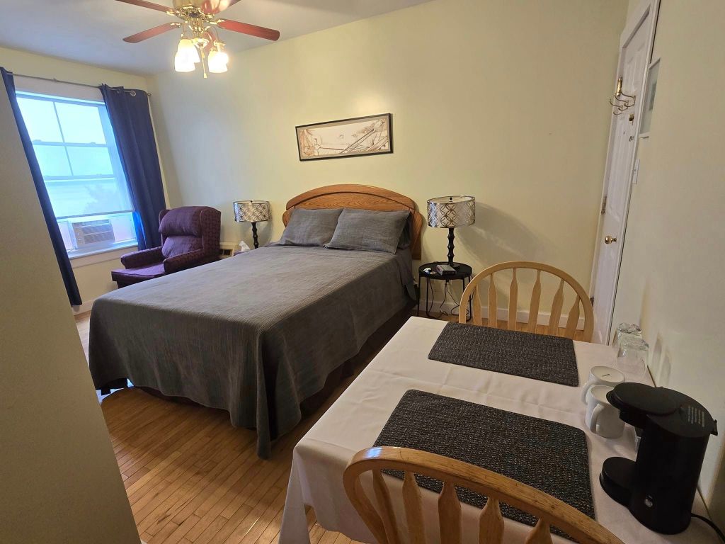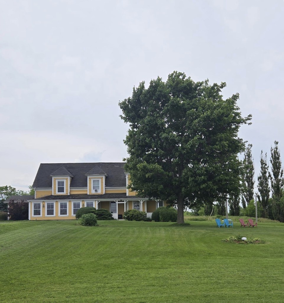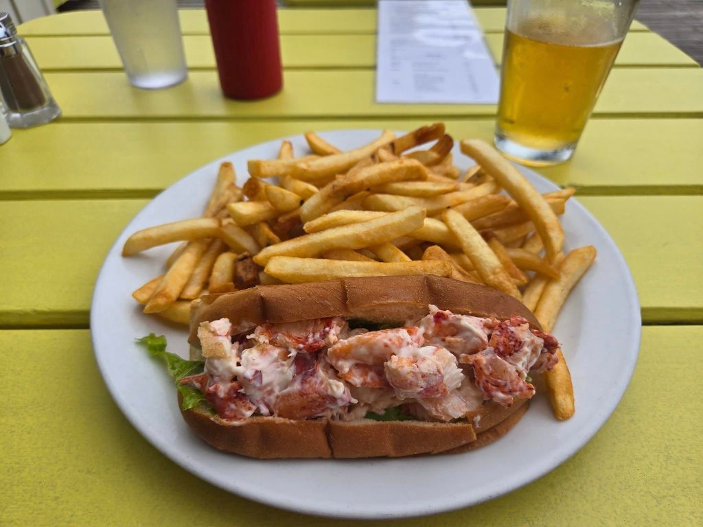 Toujours est-il que le monsieur me fait rentrer dans l’auberge. Soulagement, les lieux sont très propres. Y m’explique que lui, yé sale de même parce qu’y travaillait dehors sur son tracteur. 🚜 Y m’informe aussi que j’aurais dû avoir un petit déjeuner compris (c’est mon seul hébergement qui en offrait un) mais que finalement j’en aurai pas parce qu’il est malade pis qu’y cuisine pas. En échange, y me baisse ma chambre de quasiment 50$. C’est pas plus grave que ça. Je finirai dans un Tim, comme d’habitude, merci bonsoir. Je pars à ma chambre qui comme souvent dans les auberges, est un peu laide mais heureusement très propre. J’ai aussi une vue discutable sur la mer mais une vue pareille. Par contre, la mer, elle est pas vraiment accessible par ici. De toute façon, j’ai soif pis faim mais surtout, y faut absolument que je passe dans une pharmacie pour m’acheter quelque chose pour mes piqûres, sinon, je passerai pas la nuit. Mon ami Google m’indique un Pharmaprix pis un resto, La Sagouine (ben kin !), à moins de 5 km de mon auberge. J’en espérais pas tant. Au Pharmaprix, je m’achète une crème de Benadryl pis chez La Sagouine, je me commande une super guédille au homard avec une bonne bière. Me vla réconciliée avec la vie.