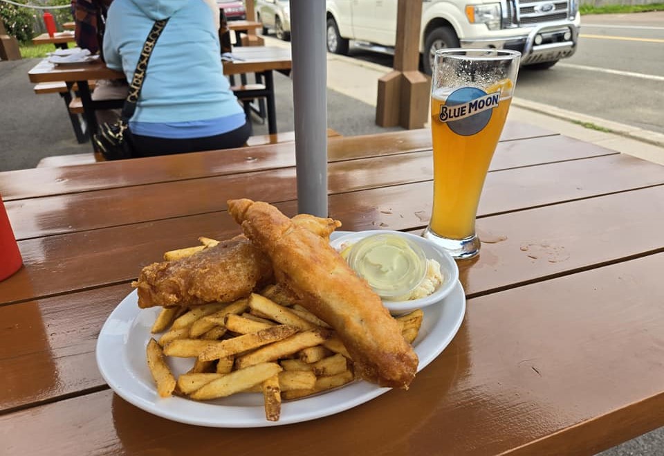 Après encore plusieurs kilomètres roulés aujourd’hui, je sens le bord de l’eau m’appeler. J’en profite pendant un bon deux heures, ben effoirrée dans ma chaise adirondack, au beau soleil, dans le calme. Avant de partir manger, je passe un coup de fil à mon père. Lui, yé déjà venu au Nouveau-Brunswick vla vingt-cinq ans pis y se souvient de TOUT par coeur. C’est pas mêlant, y me décrit très exactement le décor que j’ai sous les yeux : la petite rue, la côte au loin avec la brume dans les arbres, les bateaux de pêche… Je vous dis que point de vue mémoire, je retiens pas des voisins. 🐘 18h., je commence à avoir faim. Comme y fait super beau, je traverse l’autre bord de la rue pour prendre une bière pis manger un peu. Un peu beaucoup même. J’ai jamais vu des fish & chips de ste dimension-là. Quand je rentre à ma chambre, à 19h., ça fait onze heures que je couraille dehors. Je suis contente de ma journée pis de toutes les belles choses que j’ai vues. Dans le parking de mon motel, y’a des chars de partout : Nouvelle-Écosse, Île-du-Prince-Édouard, Ontario, Maine, Tennessee, Massachussets, Québec, évidemment, dont un char acheté chez Mitsubishi Trois-Rivières, pis un autre chez Lessard GM Shawinigan. C’est drôle de me retrouver si loin avec au moins deux compatriotes mauriciens pis pire encore, un shawiniganais. À soir, dans mon motel d’Alma, j’vais bien dormir. 🛌