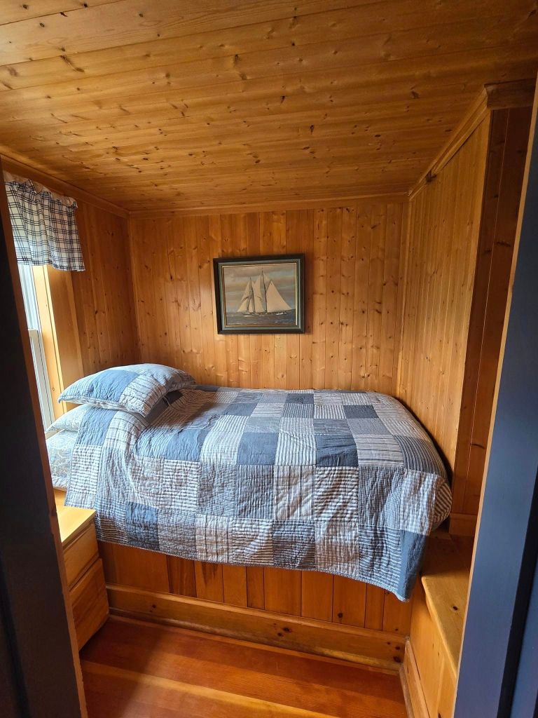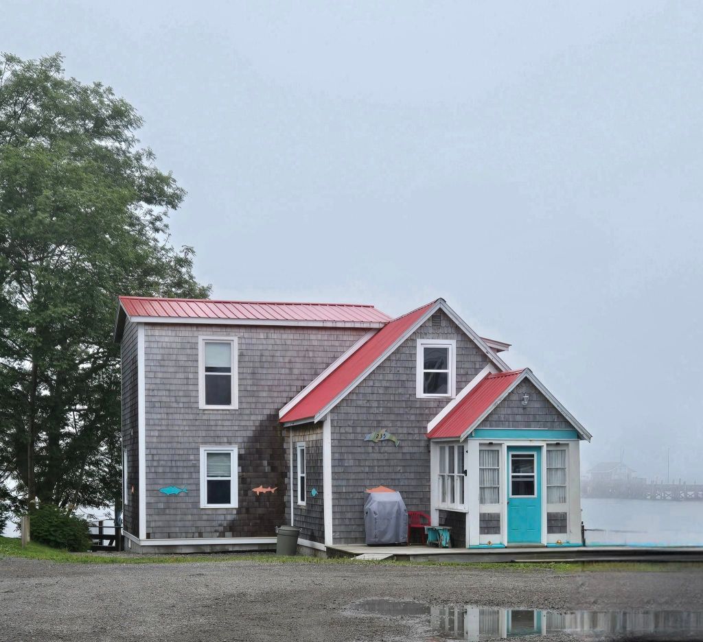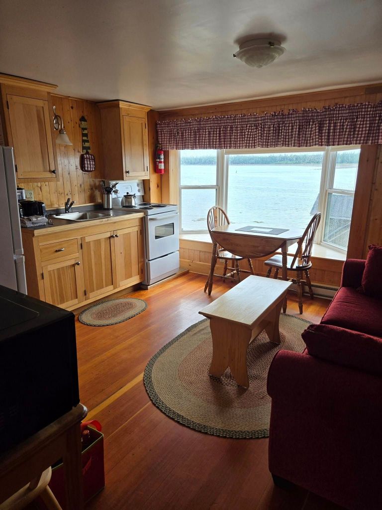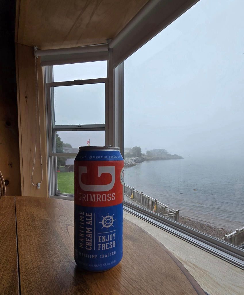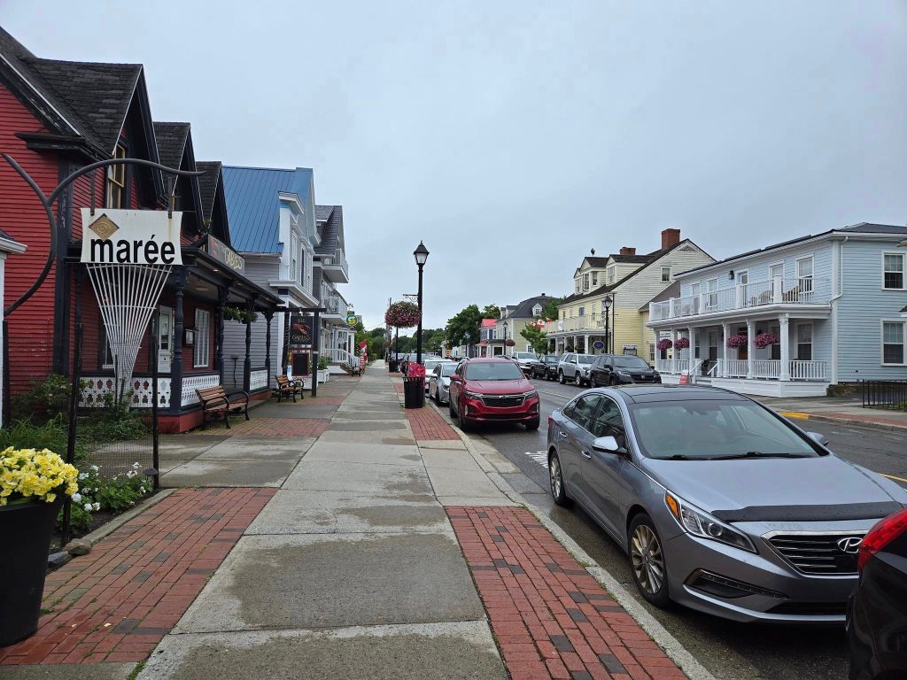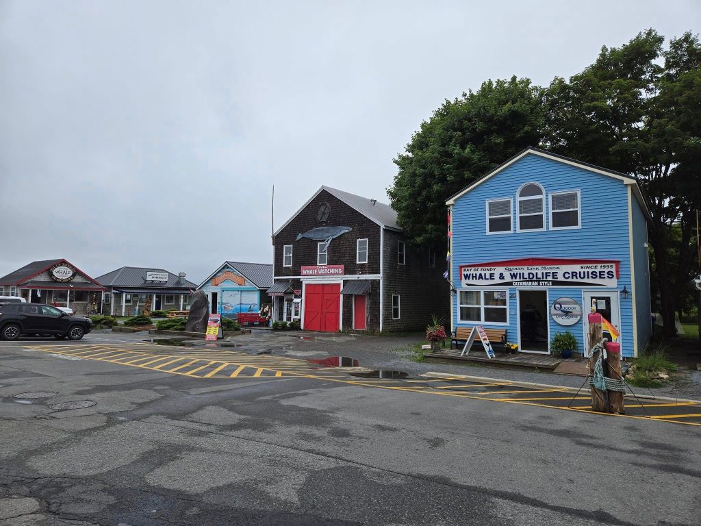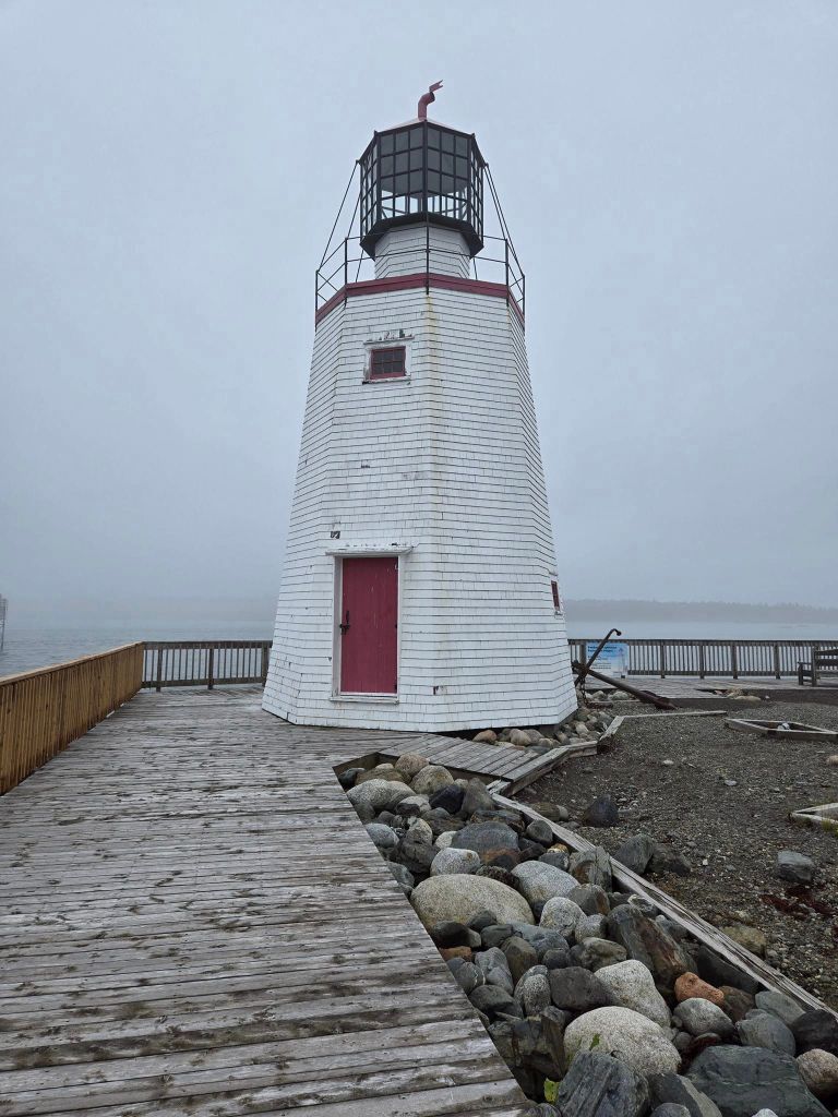 J’avais réservé deux nuits ici parce qu’initialement, j’aurais dû arriver « tard » pis profiter du coin demain seulement. Mais bon, c’est comme ça quand on se promène. On peut jamais être sûr de rien. À voir les autos dans le parking, je suis pas la seule à avoir roulé longtemps pour venir regarder de la pluie tomber. Mais attention ! Une heure après mon arrivée, y s’opère un dégagement providentiel. 🌥️ Non, y fait pas soleil mais au moins y pleut pu pis y fait pas froid. Je saute sur l’occasion pour aller marcher un peu sur la petite rue de mon motel pis acheter quelque chose à manger dans la seule « épicerie » à proximité. Ici, c’est pas mal cute. Tout est coloré pis un peu rustique. L’ambiance me rappelle un peu les petits villages côtiers en France. D’un pas à l’autre, je marche finalement 7 km avant de finalement rentrer. De la fenêtre de ma cuisinette, je peux admirer le Phare Pendlebury. C’est le plus ancien phare de la province. J’aperçois aussi les bateaux d’observation des baleines 🐳 pis d’autres qui ressemblent à des bateaux de pêche. 🐟 Tout ceci doit être magnifique par beau temps.