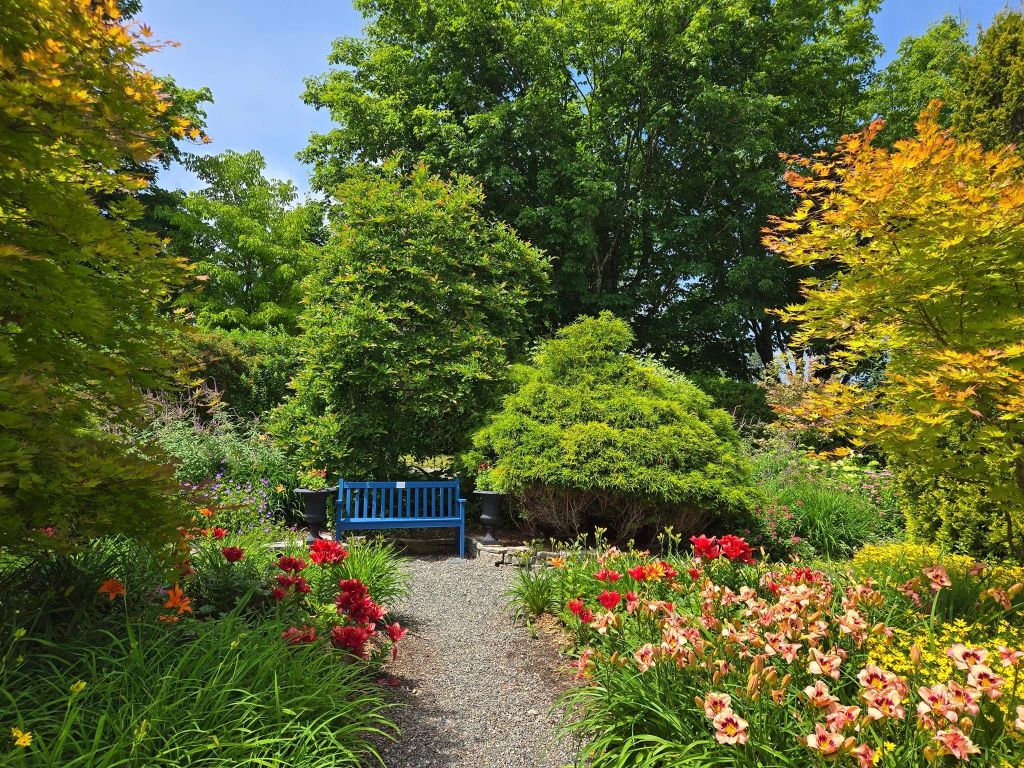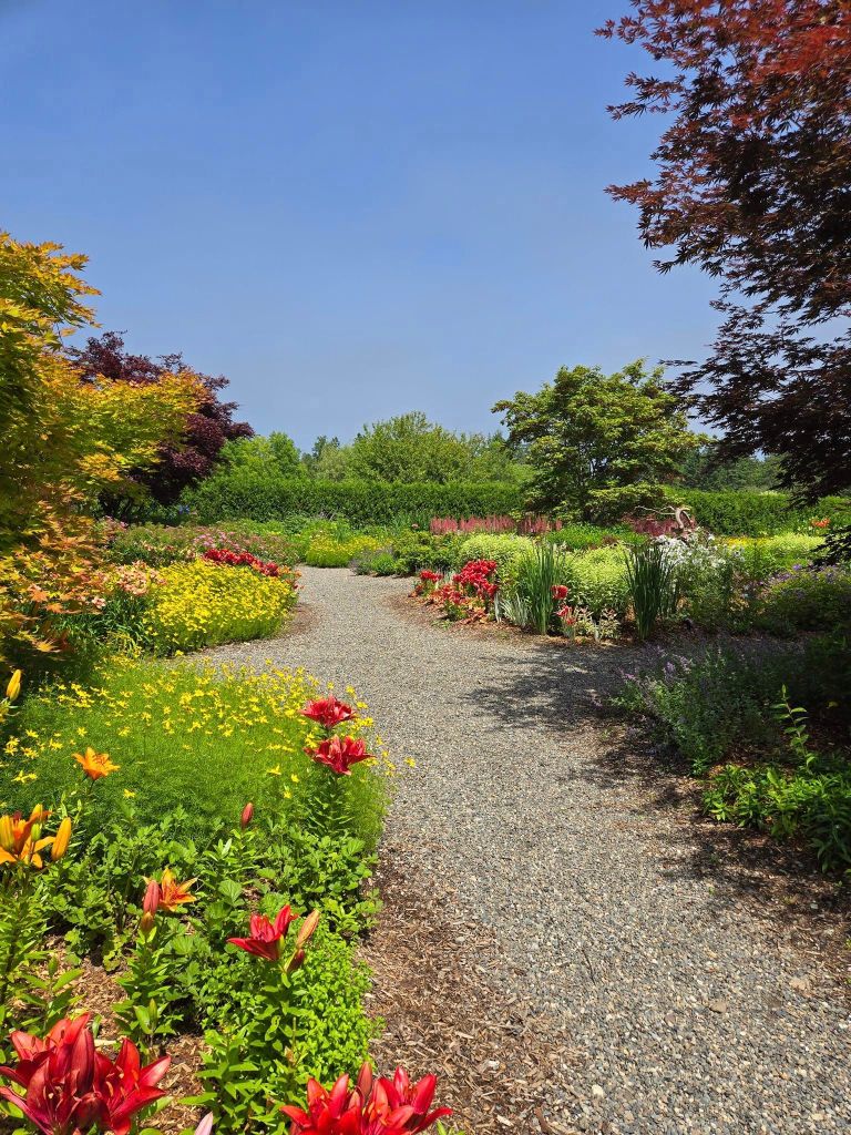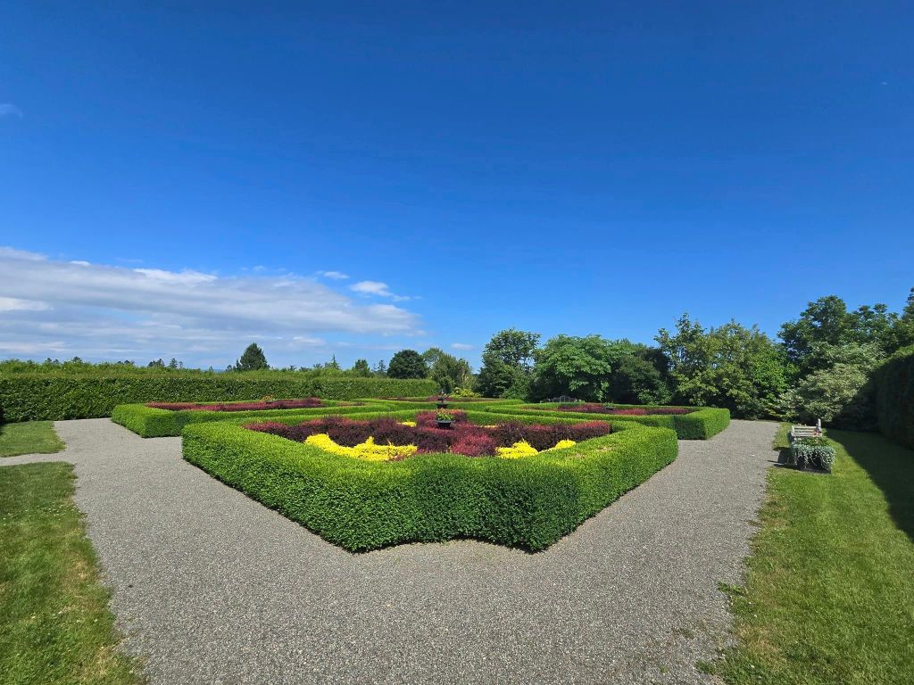 Le blockhaus est situé devant la mer pis à cette heure-là, la marée est basse. J’en profite pour marcher sul fond marin tout en donnant quelques nouvelles à mon père, au téléphone. Je rentre ensuite à mon motel pour me préparer pour ma deuxième activité du jour, la visite du Kingsbrae garden. Je suis vraiment contente qu’y fasse beau parce que ça fait très longtemps que je rêve d’y aller. Ste jardin-là est aussi à distance de marche de mon hébergement. Je me prépare mon petit sac banane avec l’essentiel dedans + une barre tendre pis une bouteille d’eau. Me vla partie, sous un soleil rayonnant mais surtout cuisant. ♨️ Évidemment, j’ai mis de la crème solaire. Le Kingsbrae garden, c’est une merveille horticole qui comporte des jardins thématiques, des étangs, des ruisseaux, une forêt acadienne ancienne, des animaux, des oiseaux, ben des insectes mais heureusement, pas de marigouins. 🌷🐇🦜🦋 D’ailleurs, aujourd’hui, j’ai aussi le bon Dieu de l’urticaire de mon côté. Mais maudites piqûres me démangent pu, enfin !
