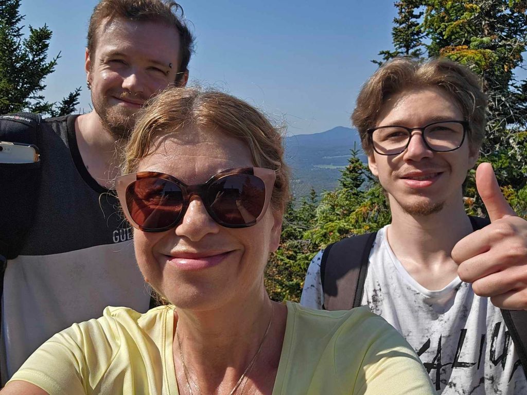 La pause dĂźner terminĂ©e, on se remet en route pour le dernier quart qui mĂšne au sommet. đ Jusque lĂ , le sentier Ă©tait quotĂ© de niveau intermĂ©diaire. Ă partir de maintenant, y passe Ă difficile. đ± Avant de s’y lancer, une petite affiche nous indique que la montĂ©e est Ă nos risques et pĂ©rils pis d’appeler 911 en cas d’urgence. â ïž C’est rien pour me rassurer ou m’encourager mais j’ai dit que je monterais pis je vais monter. En avant de moi, les garçons ouvrent encore le chemin mais y baissent quand mĂȘme de rĂ©gime. Pour ma part, les efforts pour avancer sont de plus en plus importants. J’ai chaud, je transpire pis la force pour me hisser me manque, autant dans les bras que les jambes. đ„” Je commence Ă me demander si les hĂ©ritiers hĂ©riteront pas avant le temps. đ Ste montĂ©e-lĂ , pour quelqu’un qui est pas entraĂźnĂ© pis qui grimpe sans chaussures adaptĂ©es ni bĂątons, c’est pas une sinĂ©cure. Oublions pas aussi que j’ai une prothĂšse de hanche d’un bord pis de l’arthrose de l’autre bord. Laissez-moi vous dire que je suis pas peu fiĂšre quand j’atteins finalement le sommet. đ FiĂšre, mais un peu déçue. Effectivement, comme Renaud l’avait dit, Ă partir du top, y’a pas grand chose Ă voir. Oui, on est vraiment haut mais les arbres cachent considĂ©rablement la vue. En plus, au sommet, y’a absolument rien d’amĂ©nagĂ© ou de dĂ©frichĂ©. T’est juste deboute, Ă moitiĂ© en Ă©quilibre, sul bout d’une roche. đïž En fait, ce qu’il y a de meilleur en haut, c’est la satisfaction de t’y ĂȘtre rendu. đŻ