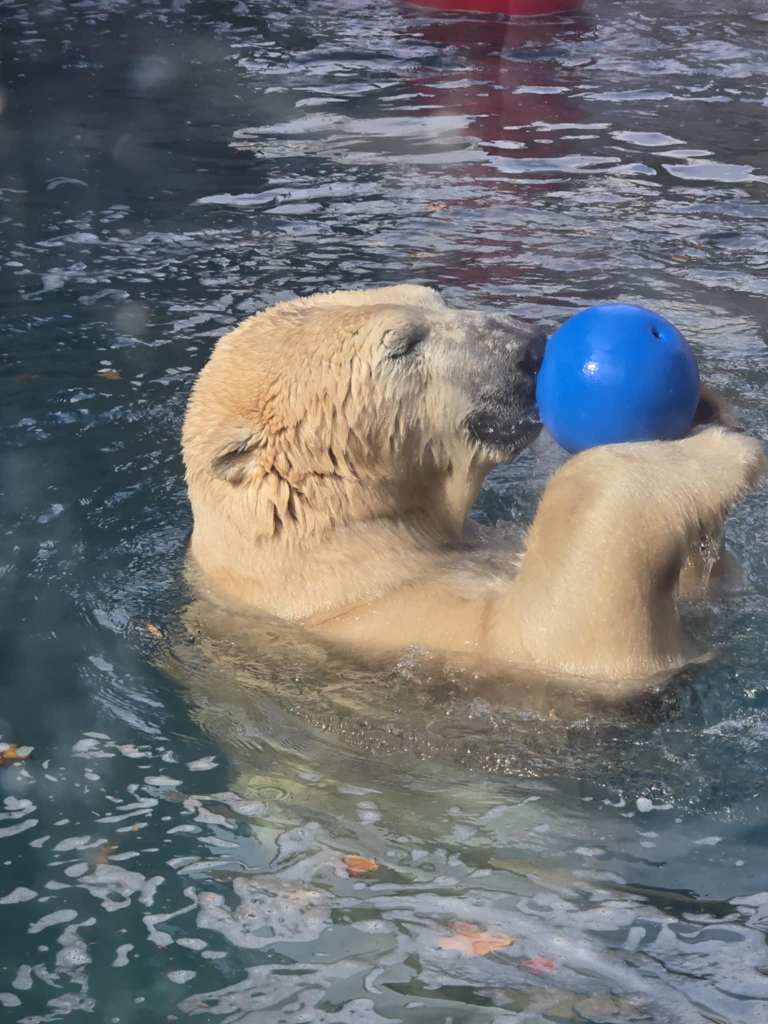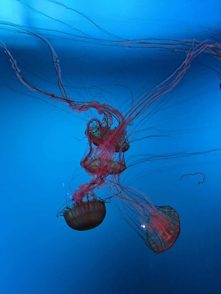 Laurayne est non seulement débrouillarde mais toujours de bonne humeur pis enchantée. L’idée d’aller visiter l’Aquarium la ravie. 🐟 On y arrive à 13h. À cette période de l’année, certaines attractions extérieures sont fermées mais y’a de quoi s’occuper en masse avec les deux grands pavillons à visiter. Moi, ça doit faire trois fois que je viens ici mais ma dernière visite doit remonter à une bonne quinzaine d’années, quand les enfants étaient petits. Celle d’avant, j’ai dû la faire ado, en voyage scolaire. Aussi ben dire que j’ai pas mal oublié. 🤷♀️ D’ailleurs, je me souvenais pas à quel point c’était beau tous ces poissons pis animaux marins présentés dans ces beaux décors-là, lumineux pis colorés. 🐠🐡🦐🦑🐌 En plus, surprise, dehors on a quand même droit à une petite animation avec les ours polaires qui sont vraiment adorables malgré leur imposante stature. 🐨 Plus loin, y’a aussi possibilité d’observer phoques pis renards, tout ça dans un cadre automnal enchanteur, avec le fleuve en toile de fond. 🍂 Franchement, tout ça est magnifique ! 🤩