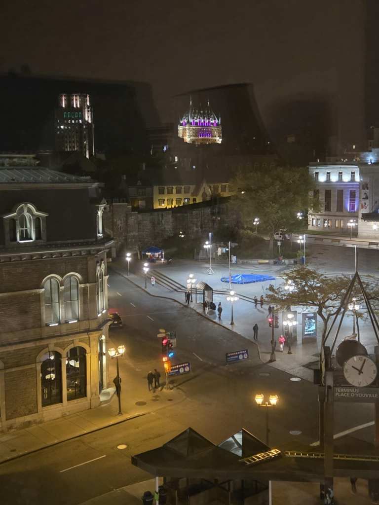 La visite terminée, on décide de se diriger dans le Vieux-Québec parce que finalement, y fait un peu soleil pis pas frette pantoute. Comme on a quand même passé l’après-midi debout, aujourd’hui, on se contente d’une « petite » promenade jusqu’au Petit Champlain pis on remonte à la chambre pour manger du Subway tout en profitant de la vue sur la porte St-Jean pis le Château Frontenac. Comme toujours, au Palace Royal, on a une ben belle chambre, GRANDE, propre pis bien insonorisée mais la vue est un peu moins bien que les fois précédentes. Cela dit, c’est quand même pas pire pantoute. Après la bouffe, on propose à Laurayne de faire quelques parties de « The mind« , jeu qu’elle connaît déjà. Après beaucoup de rires pis de nombreux mouvements de face suspects, on réussit à atteindre le niveau DIX, c’est à dire de placer en ordre croissant TRENTE cartes sans se consulter. 🏅 🏅🏅 On est pas peu fiers de notre performance. On fête ça avec une petite visite au Chocolats Favoris juste à côté. Je me prends un petit sundae, William un genre de Blizzard pis Laurayne, un GROS biscuit. 🍨 Après coup, je propose à notre invitée de profiter de notre salle de bain pour prendre un vrai bain ou douche, digne de ce nom, ce qu’elle accepte avec joie. Oui, à sa résidence, y’a des douches pis c’est propre mais des douches communes pendant quatre mois, on s’en lasse pis y faut se l’avouer, c’est quand même pas le grand luxe. 🚻