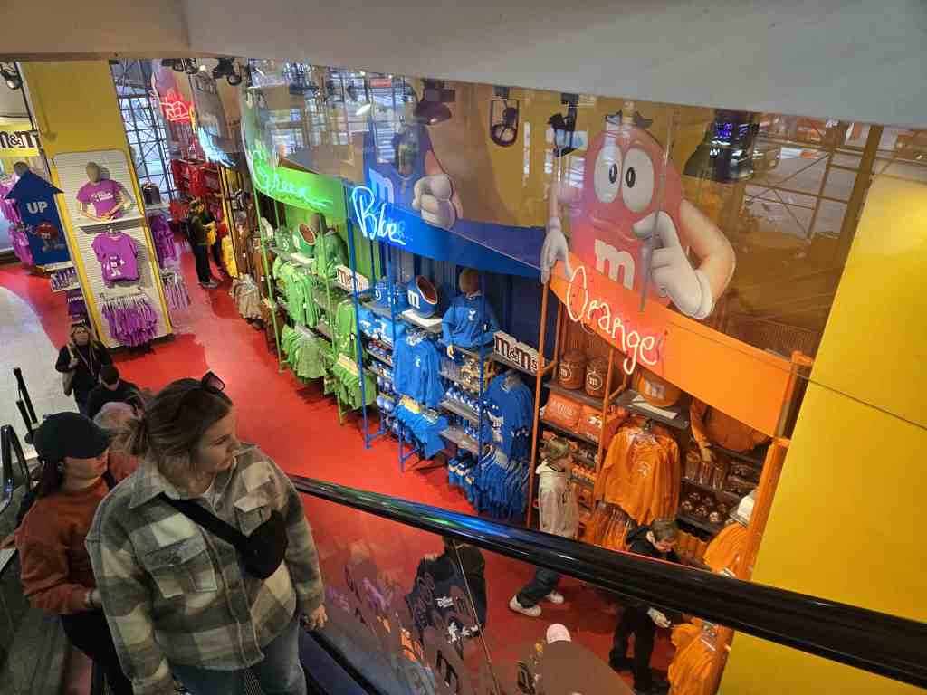 Ce matin, même routine que la journée précédente. On se lève, on se prépare, on mange notre grab & go pis on planifie notre journée. Aujourd’hui, on est déjà mieux organisés. Heureusement d’ailleurs parce qu’on a plusieurs activités au programme. La journée commence par une petite marche de 2 km vers le Rockefeller Center pour monter au sommet du Top of the rock. En chemin, la boutique M&M attire notre attention pis on décide d’y rentrer. Bon, je suis pas du tout amatrice de bonbons ou sucreries mais le magasin est impressionnant par sa grandeur pis son ÉNORME choix de produits dérivés, classés par couleurs. William s’achète un t-shirt pis on se remet en chemin. 👕 Y fait beau, on est en forme pis on est de bonne humeur. Le Top of the rock me semble pas être le gratte-ciel dont on entend le plus parler mais y vaut vraiment le détour. La visite débute à l’intérieur par une vidéo immersive relatant toute l’histoire du Rockefeller Center depuis sa construction jusqu’à aujourd’hui. C’est fou, à ce moment, de constater toutes les vedettes qui sont passées ici. Entre autres choses, les tournages de la populaire émission Saturday night live ont lieu ici même, dans l’un des bâtiments. La présentation se termine par une image du grand sapin de Noël accompagnée d’une petite chute de flocons dans la salle. ❄️❄️❄️ C’est quand même magique.