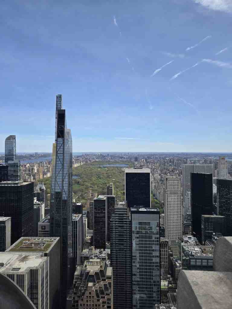 Le Top of the rock, avec ses 70 étages, est pas la plus haute tour de New-York. Il offre cependant une super vue à 360° sur la ville pis un coup d’oeil incomparable sur Central Park. Si tu veux débourser un peu plus, tu peux expérimenter le skylift qui te transporte encore plus haut ou grimper sur une poutre en fer pour reproduire la mythique photo noir et blanc des travailleurs installés sans aucune protection, à 240 mètres au dessus du vide. 😱 Encore une fois, je suis épatée par la grandiosité de la ville mais aussi par la hauteur à laquelle on se trouve. J’ai de la misère à croire que tantôt, on va monter ben plus haut. Pour tu suite, on retourne sur terre pis on passe au Starbucks pour s’acheter des boissons matinales, avec plus de succès cette fois. ☕