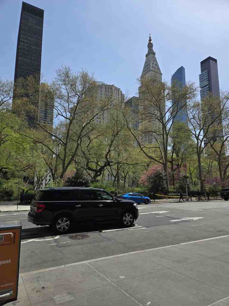 Après ce petit intermède, direction musée Friends à deux petits coins de rue. Renaud, Morgan pis moi, on a pas suivi ça ste vieux sitcom-là pis ça coûte quand même cher pour rentrer là-dedans. Comme le tour du musée est censé durer seulement une heure, William y va tout seul pendant qu’on se balade aux alentours. Une heure, c’est pas long pis c’est pas comme si y’avait rien ici pour s’occuper. En plus, on est vraiment chanceux parce qu’on a droit à un temps extraordinaire depuis hier matin. 🌞 Pour une fois, ma poisse légendaire est restée à Montréal. 😎 William sort du musée ben heureux de sa visite. Y s’est fait prendre en photos par le personnel dans certains décors de scènes cultes de la série pis y s’est acheté deux-trois souvenirs. Je suis contente parce que ça fait plusieurs semaines qu’il me parlait de ste musée-là. Une bonne chose de faite. Avant de partir pour la prochaine attraction, on s’attrape à dîner aux alentours pis on s’installe sur une table à pique-nique dans le Madison Square Park. Franchement, y’a pire comme vie…