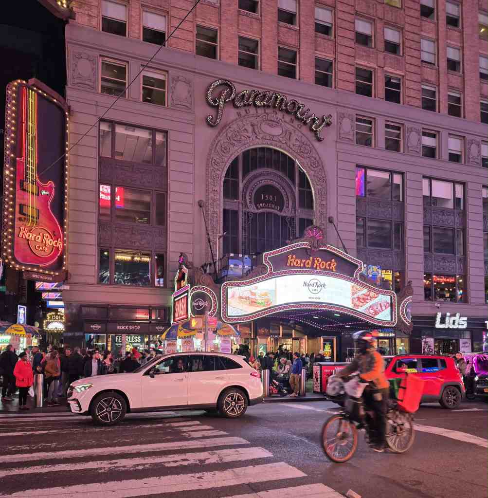 Yé rendu 19h30 quand on retourne au STOP d’autobus. À cette heure-là, y commencent à passer moins souvent. D’ailleurs, je pense que la boucle autour des attractions s’arrête autour de 20h. pour laisser place aux différents tours de nuit comme celui qu’on a fait hier. En attendant notre autobus, une voiture s’arrête pour nous offrir la formidable opportunité de regarder quelqu’un vomir sul bord du trottoir. 🤮 Comme attraction gratuite, on a vu mieux. Yé finalement 20h. quand le bus nous ramasse sul coin pis 20h20 quand on arrive à l’hôtel. On est complètement fourbus. Mine de rien, depuis qu’on est partis vendredi matin, on a roulé dix heures en autobus pis marché 45 km. On a quand même pas chômé. Ce soir, on aurait aimé faire une croisière de « nuit » mais y’a pu de places disponibles. Après une petite demi-heure de pause, on resort un peu dans Times Square pis on rentre finalement à l’hôtel avec du poulet à manger à la chambre. Avec tout ça, yé quand même assez tard pis on doit encore prendre nos douches pis paqueter notre stock en vue de notre départ demain matin. Ça y est, notre séjour est quasiment fini. Maintenant, place à notre dernière nuit New-Yorkaise… 🌛