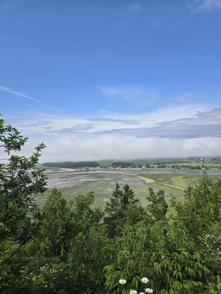 Pour repartir vers Baie Saint-Paul, on opte pour le même chemin qu’à l’aller, la route 362, qui à notre sens, est plus belle que la 138. En arrivant là-bas, on fait un petit stop pour se dégourdir pis prendre quelques photos du décor qui est vraiment spectaculaire ce matin. D’ailleurs, j’en reviens jamais quand je passe ici, combien on voit GRAND pis à quel point c’est magnifique. 😍 Pour vrai, j’y passerais des heures uniquement pour observer le panorama se transformer au fil de la journée pis des caprices de la nature. Autour de 11h., on s’accorde une autre petite pause dans une de nos haltes de prédilection, à Saint-Tite-des-Caps. Moi franchement, je suis ben en forme pis j’ai ben de l’énergie mais si je roule trop longtemps sans me déplier un peu, je souffre rapidement du bas du dos pis du bassin. 😨 Comme on le dit, mieux vaut prévenir que guérir…