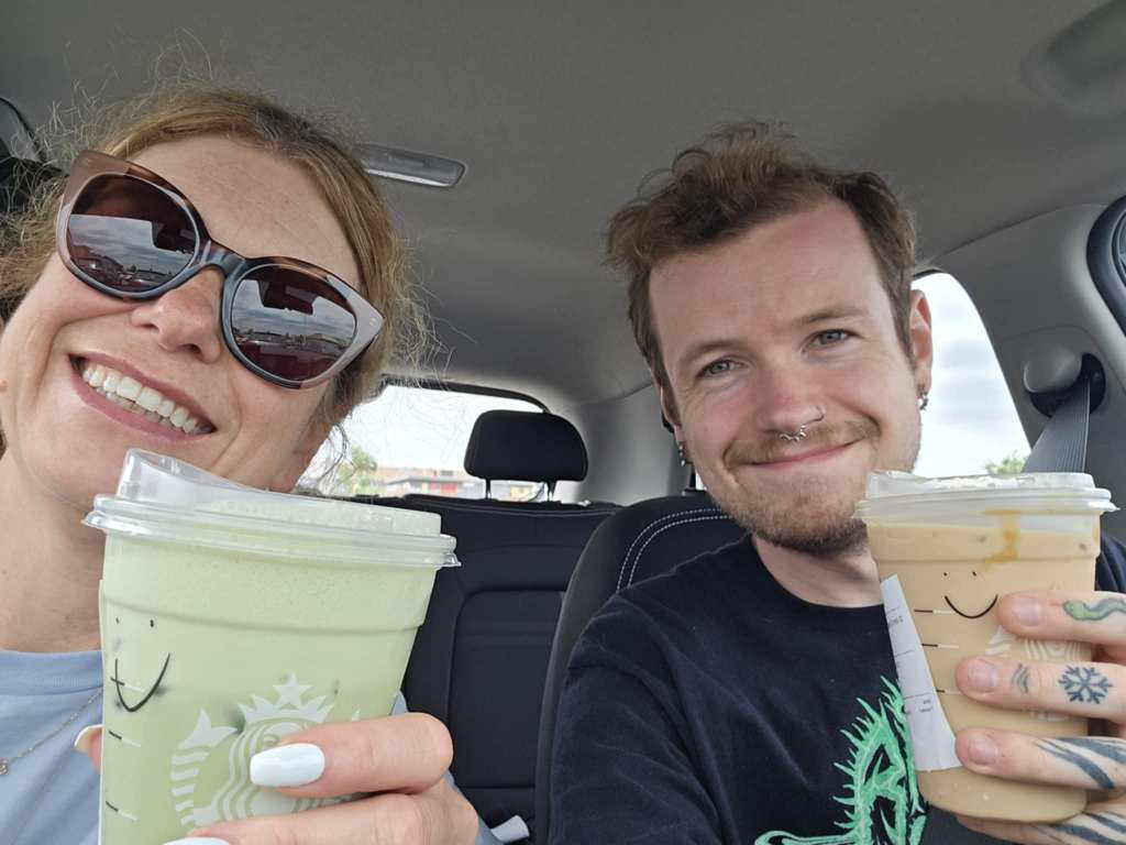 Une fois remis de nos émotions, on se lance tout heureux dans le parcours du canyon. Ici, c’est pas si grand. Le défi, si y’en a un, c’est surtout les marches à monter pis à descendre par un temps relativement chaud pis pesant. 🥵 Avec William, on foule les petits sentiers tout en se remémorant notre visite de 2014. Faudrait ben revenir avec Renaud pis Morgan. L’activité leur plairait sans doute… La visite terminée, on repart vers Montréal avec un dernier arrêt essence + Starbucks en entrant à Québec. William se commande un genre de café frette pis moi, un thé matcha latte glacé à la boisson à l’avoine et aux fraises. Eille si jamais vous avez jamais goûté à ste boisson-là, allez-y tu suite. C’est TELLEMENT bon pis rafraichissant. J’en enchainerais un après l’autre sans jamais m’arrêter. Un véritable délice.