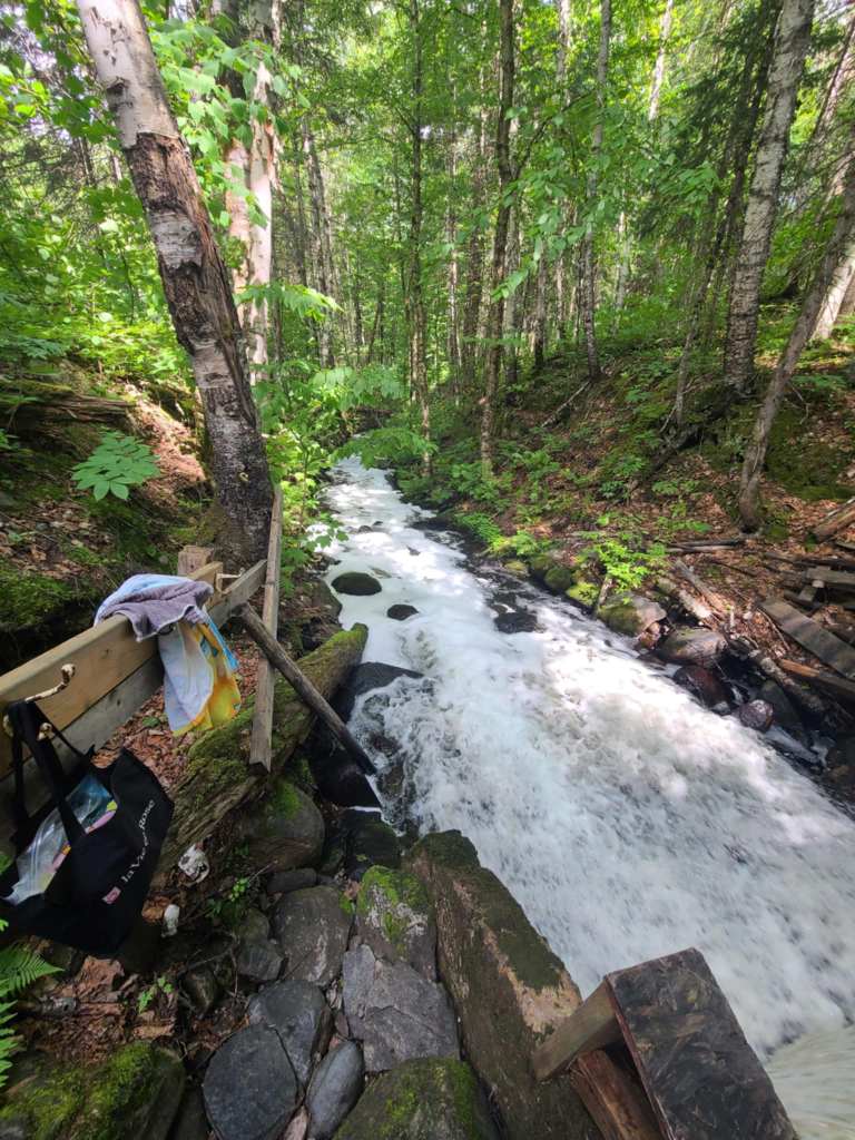 La cascade qui sert de douche a jadis été aménagée par des campeurs. Avant, c’était quand même hot comme set up mais là, ça part tranquillement à la dérive parce que personne entretient ça. 😢 La tradition en passant ici, c’est de se laver dans la chute même si on est pas sales. Cette année, y’a BEAUCOUP de courant. En même pas dix secondes, la bouteille de gel douche de mon frère est emportée par le débit extraordinaire de l’eau. Une bouteille de AXE trois dans un flambant neuve. Achetée en spécial. Mon frère est déçu. 😒 Comme mon père dit, on va mettre ça dans les pertes associées au voyage. Une autre perte à déclarée, c’est une grosse bouteille de bain moussant cheap achetée chez Jean Coutu, juste pour voir ce que ça ferait de la vider dans la cascade. Sans grande surprise, ça fait de la mousse pis ça sent l’algue marine à plein nez. 🤣 Ça attire les maringouins aussi. Beaucoup de maringouins. 🦟🦟🦟 Se laver dans la douche aujourd’hui, avec toutes ces bébittes-là pis ste courant-là, c’est assez périlleux. On accomplit toutefois la tâche avec brio avant de se rhabiller pis de repartir dans la Subaru vers La Tuque.
