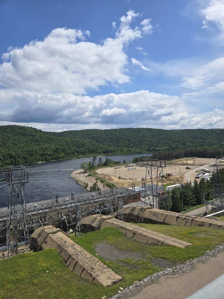 À partir de La Tuque, y faut bifurquer sur la route de La Croche pour atteindre le petit village de Rapide Blanc. Le rituel quand on roule sur ste route-là, c’est de toujours dire les mêmes affaires pis de se raconter toujours les mêmes souvenirs survenus les années d’avant : « Eille vous rappelez-vous du petit cerf qui était mort sul bord du chemin icitt ? », « Ouin, je me demande qui vit dans des maisons aussi éloignées de toute », « Kin ici avant c’était un spot à barbottes », « Ah ben kin, c’est ici qu’on avait déjà pogné une tempête de sable avec Réjean. » Que voulez-vous, c’est ça qui arrive quand tu passes toujours à la même place. 🤷♀️ La bonne nouvelle, c’est que d’année en année, on a des anecdotes qui se rajoutent. Ou ben on découvre des nouveaux spots. Cette année, on a hâte d’arriver au barrage de La Trenche parce qu’apparemment, y’a des travaux à la centrale pis on est curieux de voir de quoi ça a l’air. En arrivant sur les lieux, on constate quelques nouveaux aménagements auxquels un néophyte porterait pas attention. On descend en vitesse sul barrage pour prendre notre selfie annuel parce que parmi les nouveautés, il est indiqué qu’on a pu le droit de s’immobliliser dessus. Depuis deux ou trois ans, mon père débarque pu pour le selfie. On se pose en vitesse pis on repart direction Rapide-Blanc.