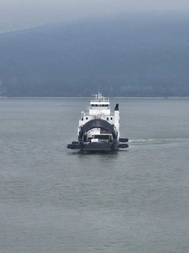 Après toutes ces belles visites-là, c’est malheureusement le temps de reprendre le traversier pour retourner chacun chez nous. 🚢 Aujourd’hui, on a droit à un bateau différent de celui d’hier soir, le Svanoy, temporairement en service le temps de réaliser des travaux en cale sèche sur l’autre traversier. Le Snavoy est moins récent mais son intérieur est quand même sympathique. Heureusement d’ailleurs parce que cinquante passagers sont restés coincés dessus pendant trois heures l’an passé à cause d’un problème de propulsion. Fin de l’histoire. 🔚 Fin du voyage aussi. 🔚 Quasiment. La suite se passe essentiellement à rouler, à part un petit arrêt crème glacée à Sainte-Anne-de Beaupré. Yé autour de 18h. quand je récupère mon char au Minisitère des Transports, à Trois-Rivières, après avoir fait le détour par Shawi pour déposer mon père. Je suis pas tant fatiguée mais je commence à être tannée de rouler pis je dois encore conduire jusqu’à Montréal. Dans le coin de Québec, on a finalement pogné de la pluie mais par ici y’en a pas vraiment. Sur la 40, un accident me retarde d’une demi-heure.