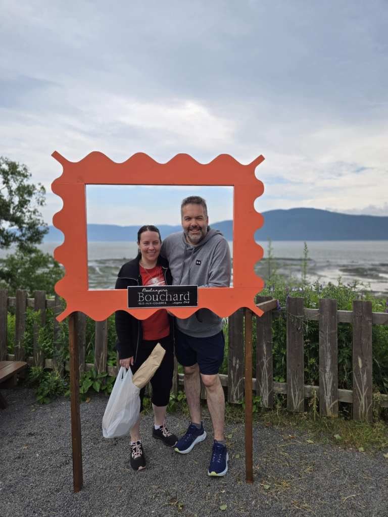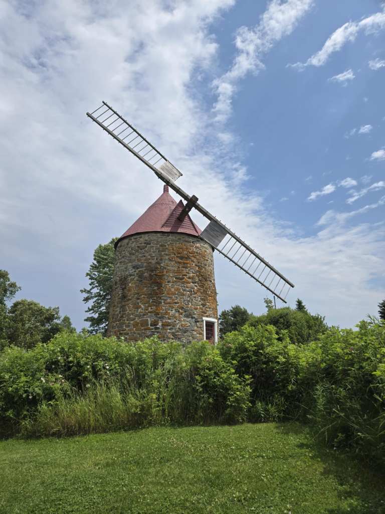 Notre dernier point d’intérêt avant de quitter l’île, c’est le site des moulins. Ici, l’endroit est unique parce que c’est le seul au monde qui comporte un moulin à eau pis un à vent sul même site, les deux encore fonctionnels. Bon, y’ont tu fait le tour de monde pour s’assurer que nulle part ailleurs y’avait pas un combo de moulins sur la même terre ? 🤔 J’en doute un tit peu. Bref, ici, unique ou pas, le site est super joli. 🤩 Pour 16$, t’as droit à une visite guidée vraiment très intéressante. C’est drôle quand même combien un sujet bien expliqué peut devenir captivant. On m’aurait demandé, hier, si je m’intéressais aux moulins pis ma réponse aurait probablement été non. Ce matin après la visite, j’ai envie de devenir meunière. 🤣 Avant de quitter, mon père s’achète un hoodie dans la petite boutique-souvenirs. Je suis contente qu’il aime assez son voyage pour avoir envie de se rapporter un souvenir. Kin, je viens de chercher un synonyme de souvenir sur internet pour pas dire le même mot deux fois dans mes deux dernières phrases. Au choix, j’aurais pu dire que mon père a eu envie de se rapporter une évocation, une reminescence, un relent ou une souvenance. Me semble de le voir arriver devant ses amis : « Eille checkez ça la reminescence que j’ai ramenée de l’Isle-aux-Coudres ». 🤣🤣🤣