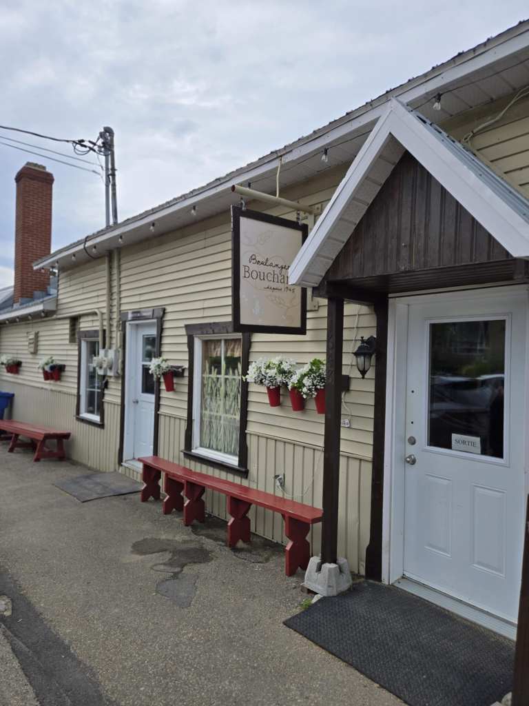 La cidrerie d’ailleurs, c’est le deuxième arrêt au programme. 🍎 Ici, le site est aussi cute à l’extérieur qu’à l’intérieur. À vendre dans le magasin, de nombreuses sortes de cidre que tu peux déguster avant de faire ton choix pis différents produits provenant des autres artisans locaux. C’est de même dans Charlevoix. Peu importe le commerce dans lequel tu vas, tu retrouves également les produits des autres. Une bonne façon de faire connaître les petits commerçants pis d’encourager l’achat local. À la cidrerie, Evelyne achète plusieurs bouteilles pis mon père repart avec trois. La destination suivante, vraiment pas loin, c’est la Boulangerie Bouchard. 🍞 À vendre ici, du pain, évidemment, mais aussi des pâtisseries, des pâtés, des sandwichs, des pizzas pis différents produits fins provenant des autres marchands, encore une fois. La place est super touristique. Ça fait drôle de s’imaginer que c’est pourtant la boulangerie normale de plein de monde. Enfin, des 1400 Coudrilois. Eille, ça fait pas beaucoup d’habitants ça. Y doivent ben tous se connaître à force de se croiser perpétuellement dans les mêmes endroits publics. Ça doit être le fun de vivre dans une petite communauté de même. Moins pratique cependant quand t’hais quelqu’un.