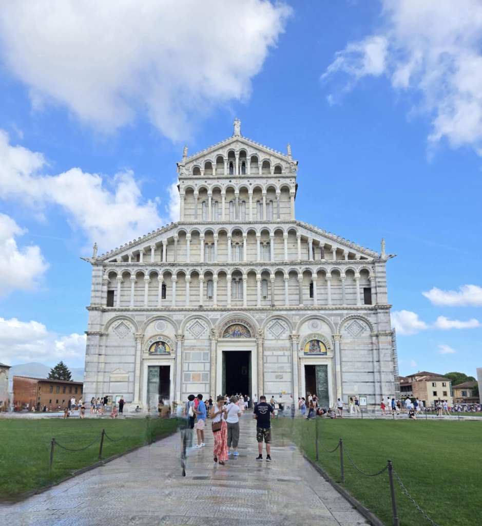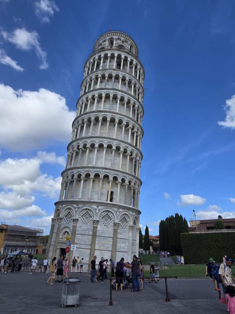 La visite de la cathédrale est intéressante de par les informations qu’on nous transmet mais pour le reste, bien que l’intérieur soit magnifique, je peux pas dire que ça m’apporte un gros + par rapport à la basilique que j’ai visitée ce matin. La tour par contre, ça c’est impressionnant. 🫨 Pour vrai, quand t’arrives comme ça devant un monument célèbre que t’as vu en image plein de fois, c’est vraiment émouvant. Et que dire des centaines de personnes autour qui se font photographier en faisant semblant de la pousser ! C’est vraiment le fun à voir. Sérieusement, je suis fascinée par ste tour-là, autant par son inclinaison que sa beauté pis sa prestance. 😍 À ste moment-là, je me dis que malgré mes badlucks initiales. j’ai vraiment énormément de chance d’être ici. D’ailleurs, je compte bien en profiter au maximum d’ici la fin du voyage. J’en suis à ste réflexion-là quand Roberto nous abandonne au pied de la tour. On peut maintenant profiter de 45 minutes libres pour fouiner dans les petits kiosques de souvenirs à proximité. Pour ma part, je saisis l’occasion pour me payer un délicieux gelato aux fraises que je déguste en vitesse avant qu’y fonde sous la chaleur écrasante. 🍨 Par la suite, c’est retour au bus qui nous ramène à l’hôtel.