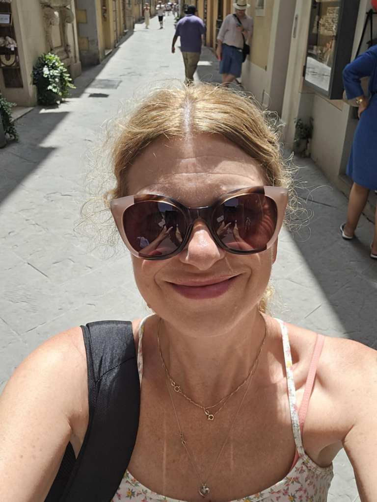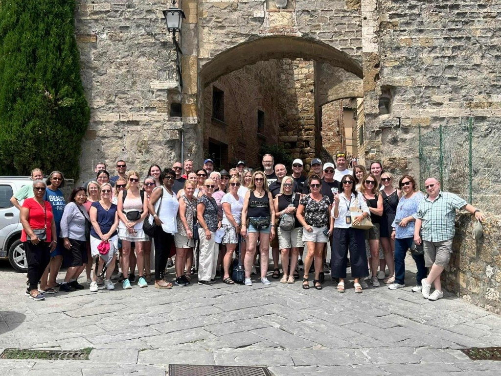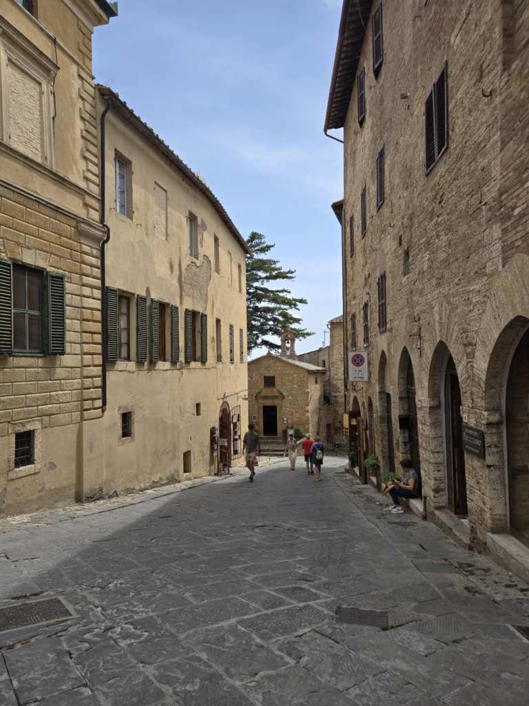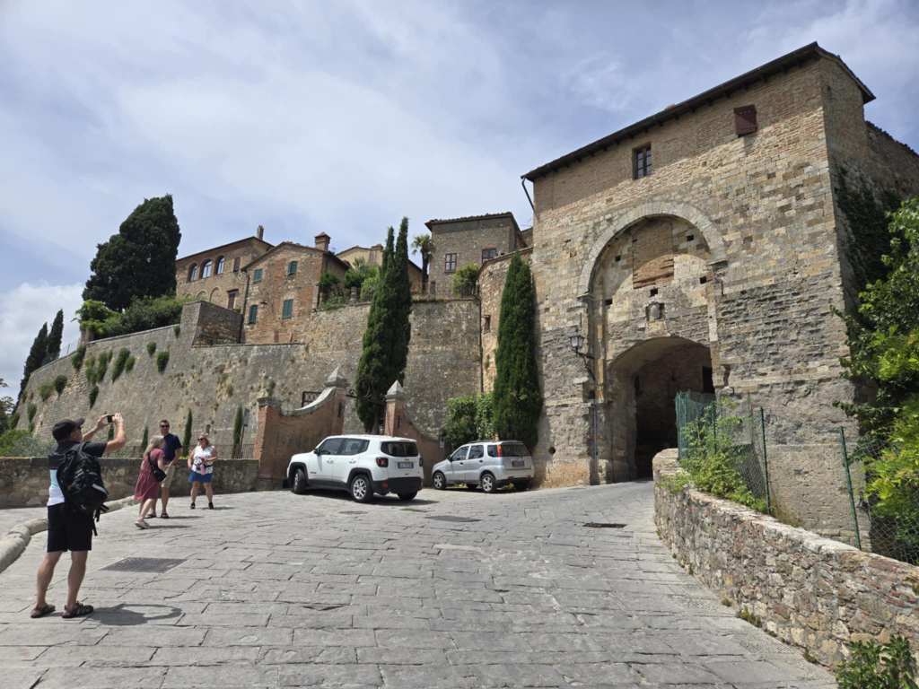 Aujourd’hui, on a quand même beaucoup de route à faire. 550 km environ. J’aimerais bien admirer le paysage mais évidemment, j’ai tendance à somnoler. 😴 Après une heure de route, je me sens toujours pas super bien faque je prends une deuxième Gravol. Au yable l’endormissage. On va gérer le problème le plus urgent en premier. Quelque part dans la matinée, on fait un arrêt dans une halte routière. Je constate en descendant du bus que j’ai pu mal au coeur (youppi !) mais que j’ai de la misère à tenir deboute sous l’effet des Gravol, de la chaleur pis de la fatigue générée par ma mauvaise nuit, le voyage lui-même, le décalage horaire pis toutes mes mésaventures. 😵💫 Mais bon, on a encore de la route à faire faque je me rendors jusqu’à notre deuxième arrêt, à Montepulciano. 😴 En sortant du bus, je me sens toujours molle mais je suis faite forte. Je sais que je vais finir par reprendre du poil de la bête tôt ou tard.