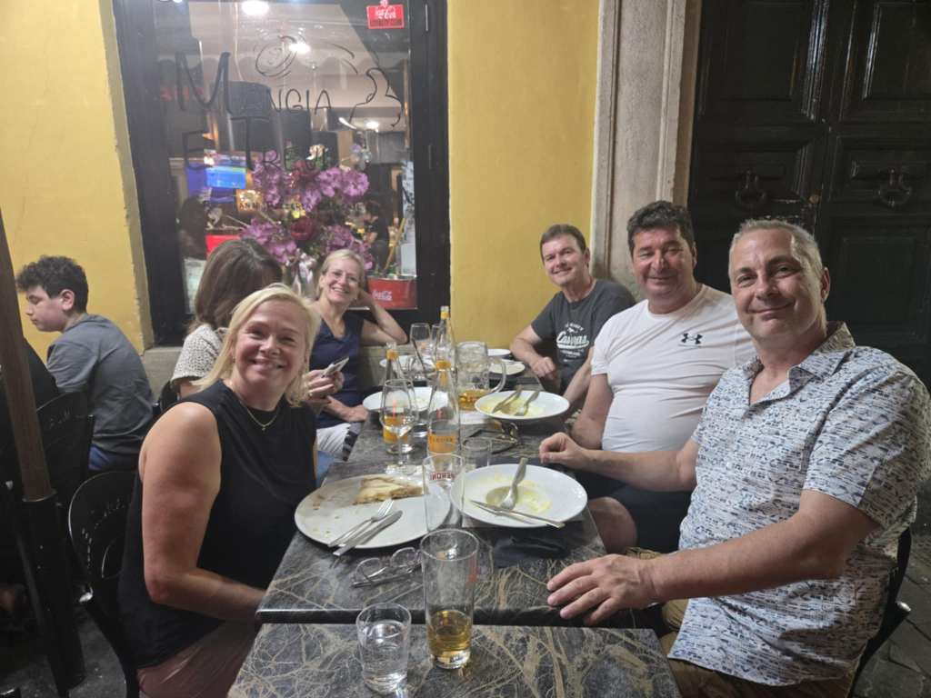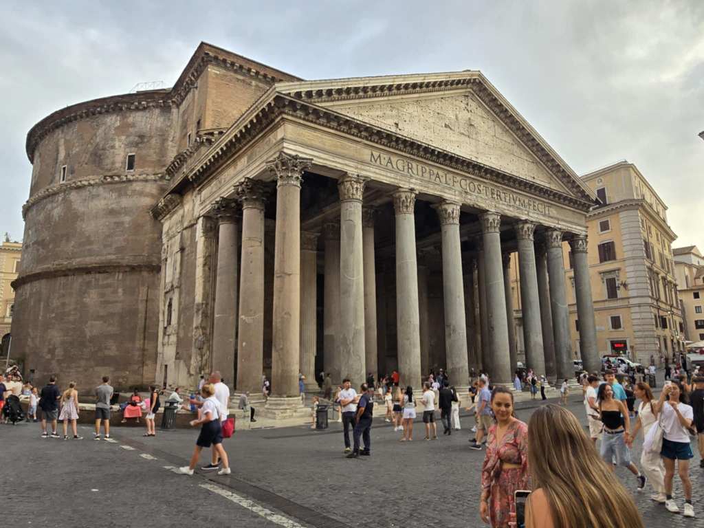 En quittant la fontaine, on poursuit notre marche jusqu’au Panthéon, bâtiment construit au 1er siècle AVANT Jésus-Christ. 😮 Non mais eille, êtes vous capables imaginer ça un peu, les gens qui bâtissaient des affaires de même avec les moyens de l’époque ? My god, réssucitez-les pour qu’y viennent refaire l’hôpital Maisonneuve-Rosemont. Ça va leur prendre trois-quart d’heure ! 😁 En tout cas, on peut juste être admiratif devant un tel monument. 🤩 C’est vraiment fascinant. Sur cette pensée, on reprend notre marche jusqu’à la Piazza Navona avant de rebrousser chemin vers l’hôtel en vue d’un resto pour souper. Notre choix s’arrête sur la petite terrasse d’une ruelle animée. Je me commande une bonne bière frette pis une pizza margherita. 🍺🍕 C’est la première fois que j’en mange en Italie pis elle est franchement délicieuse. Je me trouve chanceuse de souper sur une terrasse, à Rome, avec toutes ces personnes sympathiques que j’ai rencontrées. Mes déconvenues du début sont maintenant oubliées. Merci Sylvain, Benoît pis tous les autres pour votre précieuse amitié. 😍