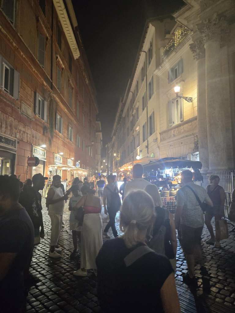On avait prévu rentrer à l’hôtel en taxi mais on a mangé pas mal pis on est super bien dehors. Le trajet de retour se fait donc à pied, pour un total de 10.2 km. 🚶♀️ Au retour à l’hôtel, yé pas loin de 23h. Après une douche rapide, je m’échoue dans mon lit, fatiguée mais contente. Ce soir, dans la Ville éternelle, je m’endors en posant la tête sur l’oreiller. 🛌