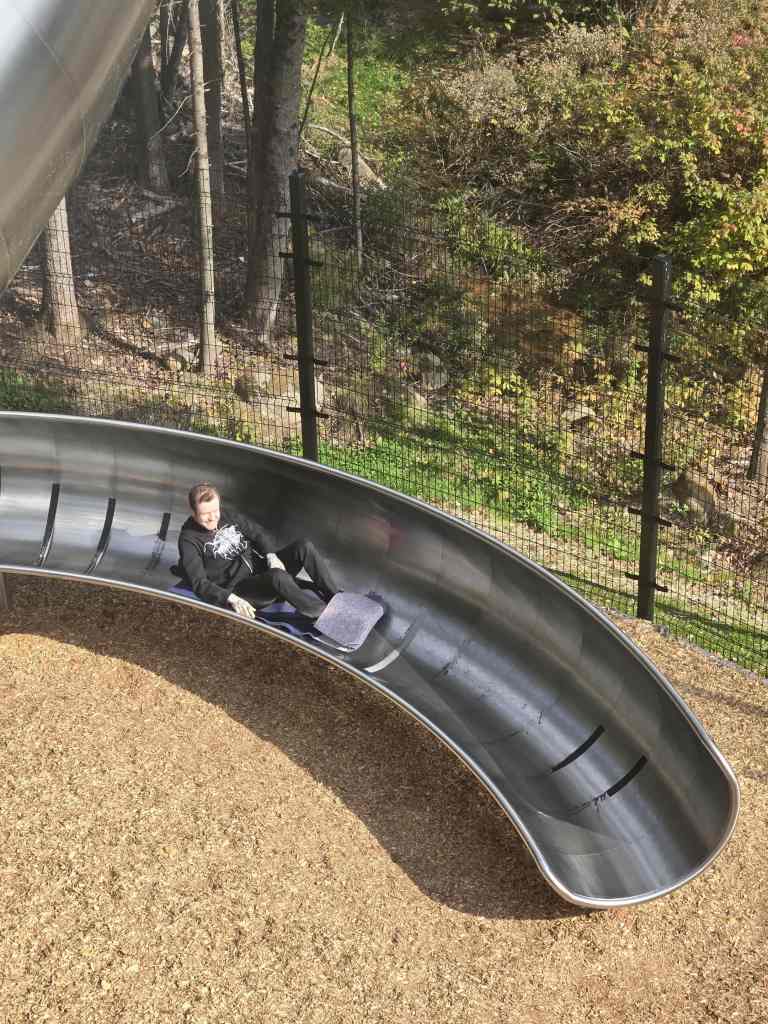 Sur le chemin du retour, jeunes et moins jeunes peuvent redescendre de la passerelle (et non de la tour) par la plus haute glissade du Canada. L’héritier tente le coup mais moi, je préfère m’abstenir. Ma deuxième oreille est pratiquement revenue à la normale depuis quelques minutes seulement. J’ai pas envie de tenter le diable. 😈 Après un peu d’écorniflage dans la boutique souvenirs, on reprend la route direction Montréal, question d’éviter le trafic de fin d’après-midi. Dans la voiture, on se croirait en plein mois de juillet avec le gros soleil ben haut dans le ciel. 😎 De toute évidence, mon karma météorologique m’a quittée en 2025. Que ce soit à New York avec mes boys, dans Charlevoix avec William, en road trip avec mon père pis mon frère, en Italie, en Gaspésie, à Magog avec Renaud ou à Tremblant avec William, j’ai pas eu une seule goutte de pluie ! C’est quand même exceptionnel ! 😮