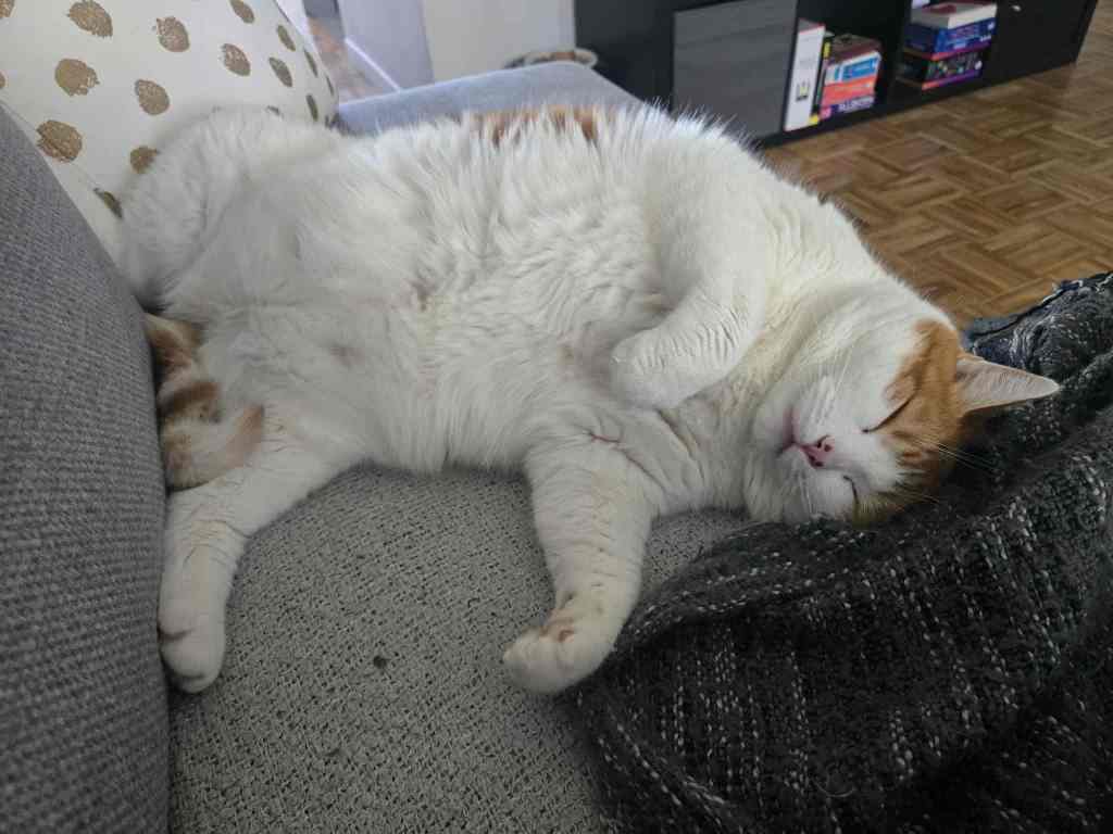 Objectif #3 : Pédaler l’équivalent de 200 km d’elliptique. 🚴♀️ Cet objectif est-il réussi ? Oui. 😀 Dépassé lui aussi. Pas de beaucoup mais bon, j’ai réussi à pédaler 218 km. Bon, ça l’air de rien mais c’est long st’affaire-là ! Ça me prend une demi-heure pour en faire six-sept. Ça, ça veut dire que j’ai pédalé pendant environ dix-sept heures. Si j’avais avancé pour vrai, je me serais quasiment rendue à Québec. Malheureusement pour moi, j’ai tout fait ça statique, dans mon salon, sous le regard vigilant de mon GROS Charlot qui comprend pas pantoute le but de se maintenir en forme. Faut dire que lui, y se la coule plutôt douce jour et nuit, beau temps mauvais temps. 🤦♀️